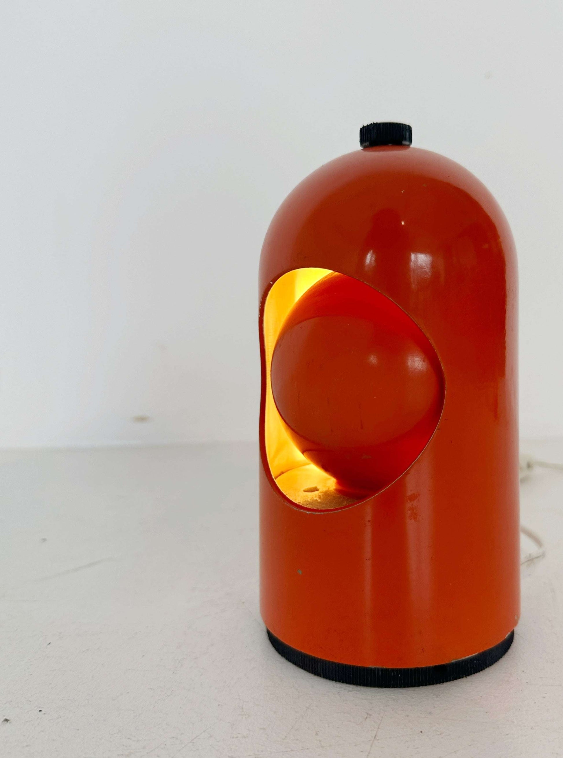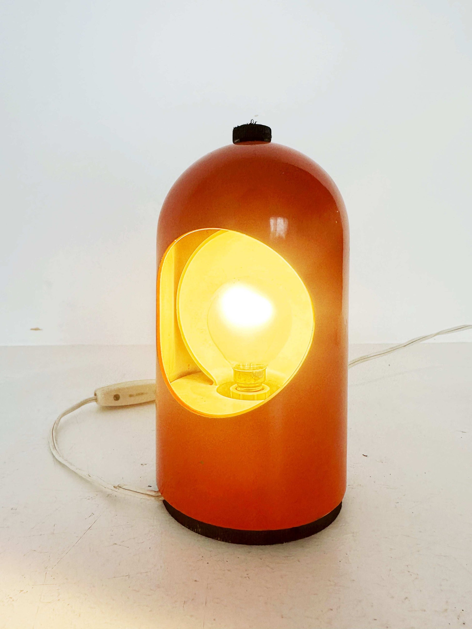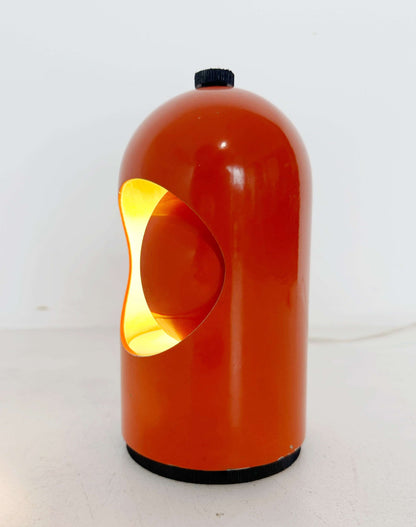 Lampada da tavolo in metallo verniciato color arancio