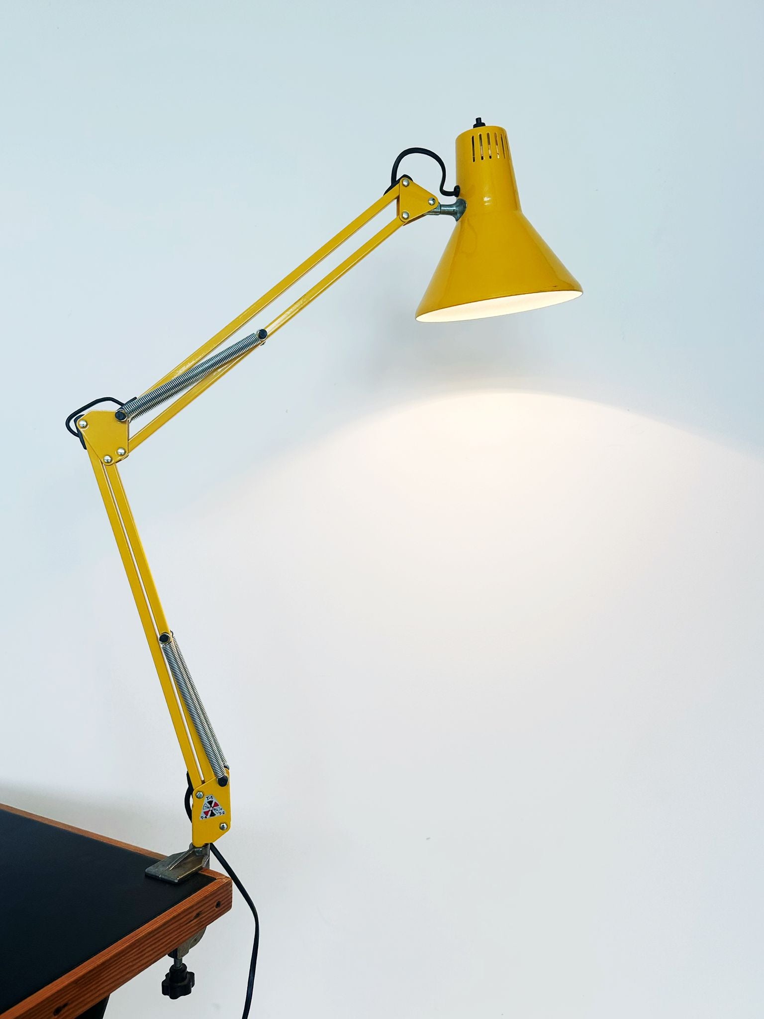 Lampada morsetto Twist T1 T2 T4, Targetti,1970, in metallo giallo, luce orientabile