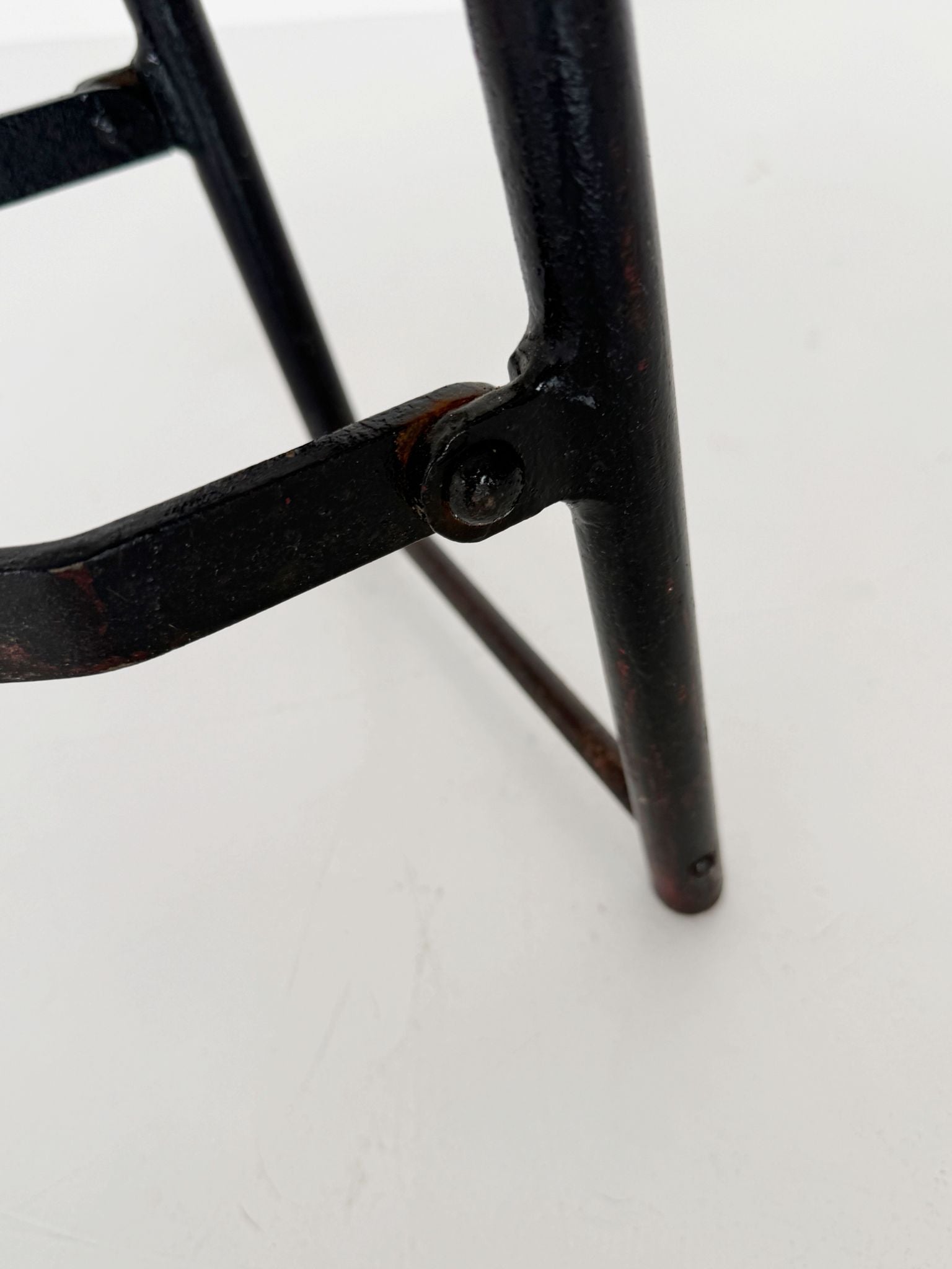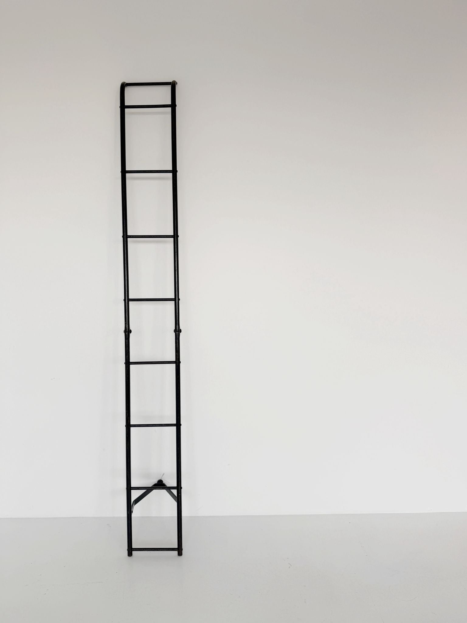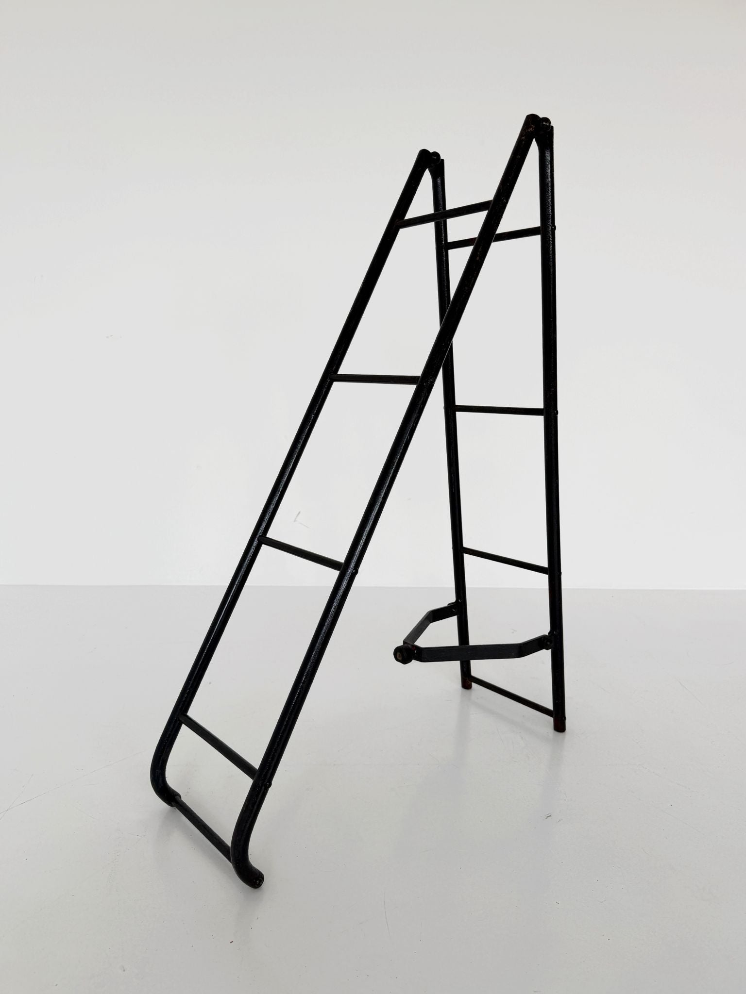 Lightweight and ingenious, this 1950s library ladder is made of black-painted metal tubing, with a refined ball-and-socket system that allows for easy opening, closing, and storage.