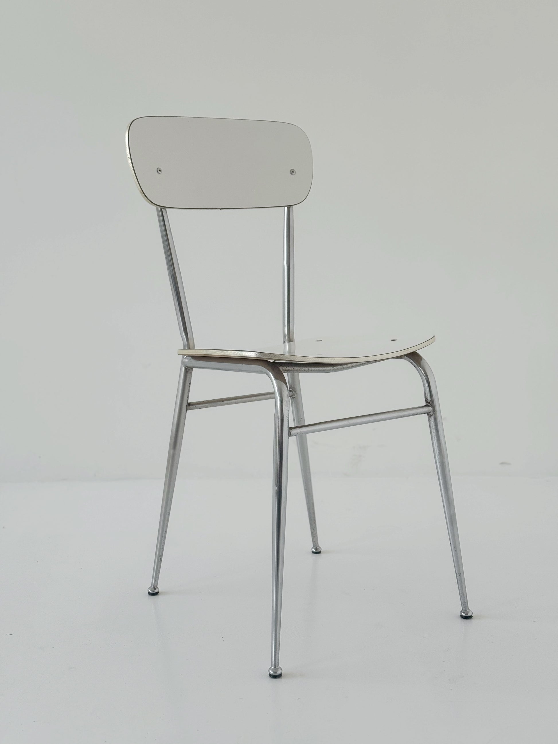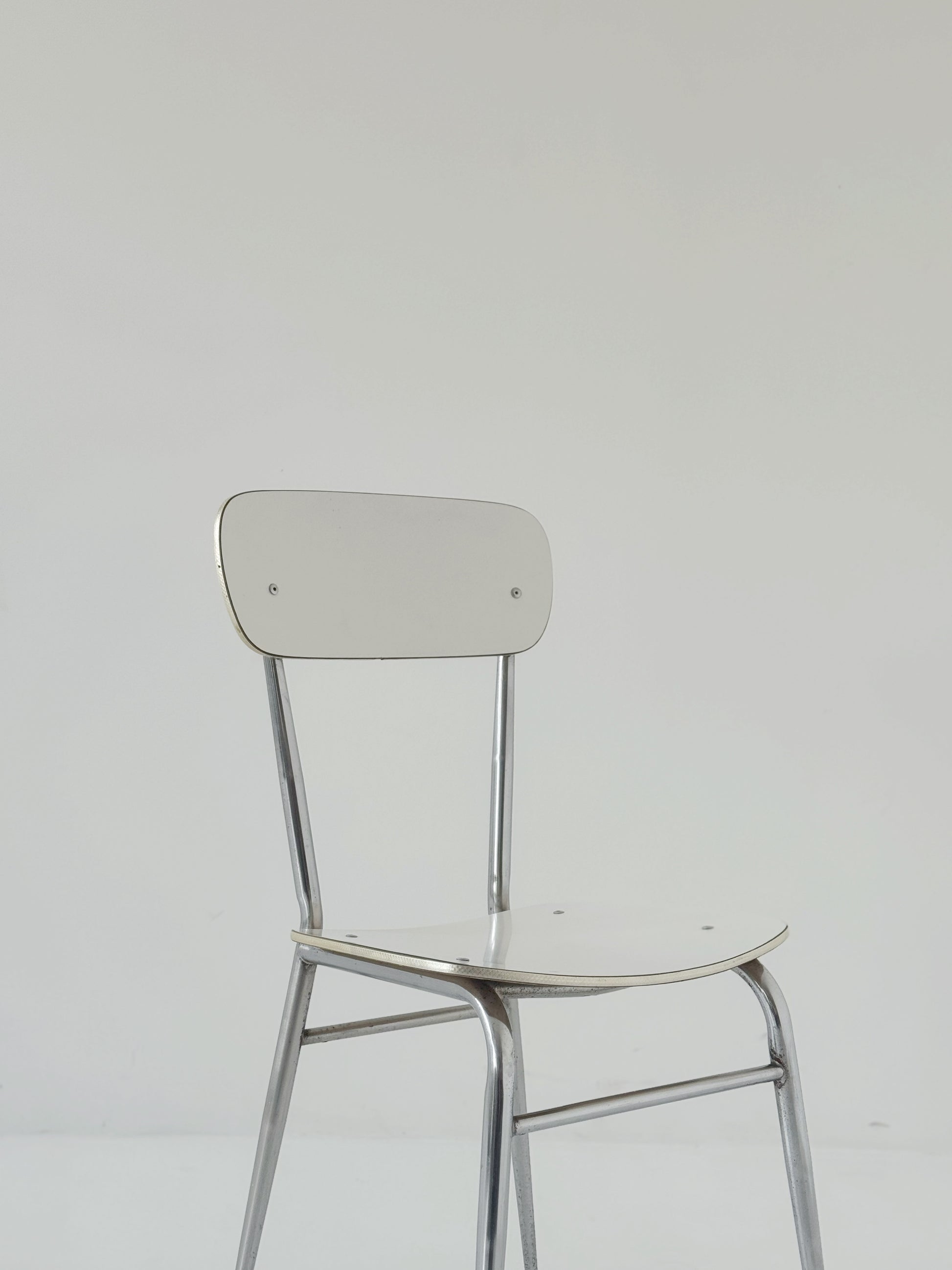 Chair,1960s, structure in chrome metal, seat and backrest in white formica