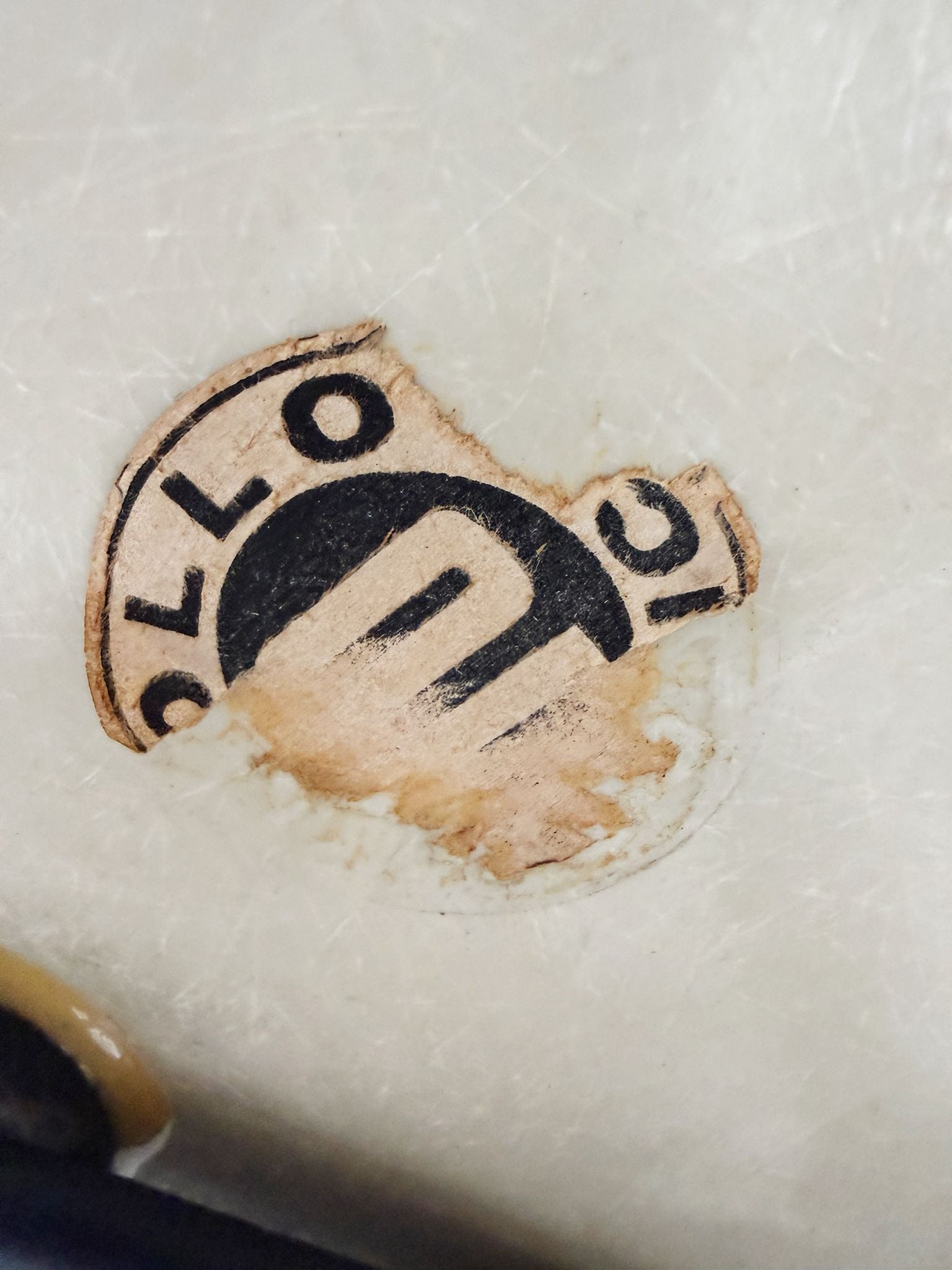 Under the seat is an original paper label, partially preserved and not fully legible, bearing the fragmentary wording "COLLO G." The incompleteness of the label prevents a definitive attribution of the manufacturer, but confirms its industrial origin and production date.