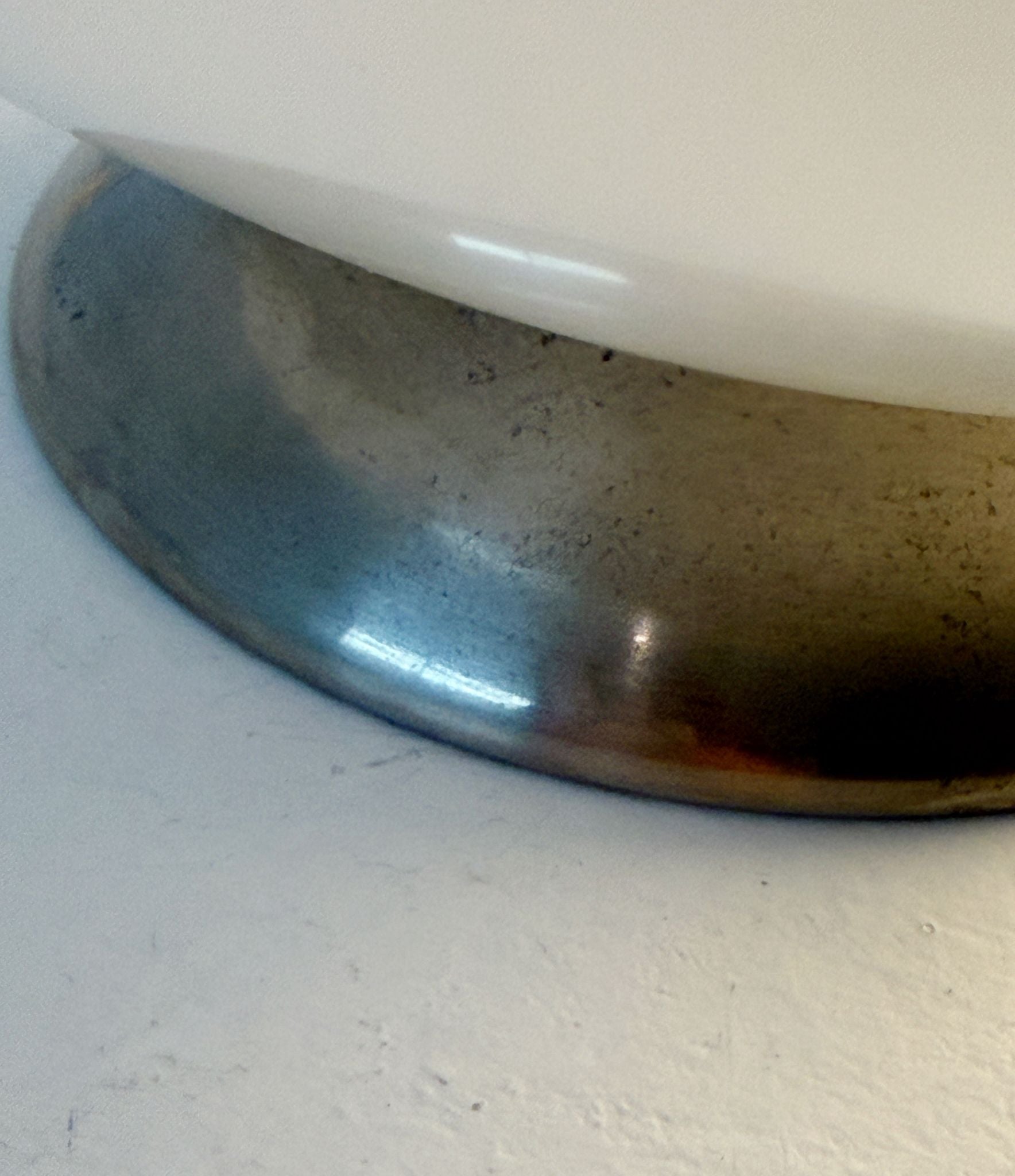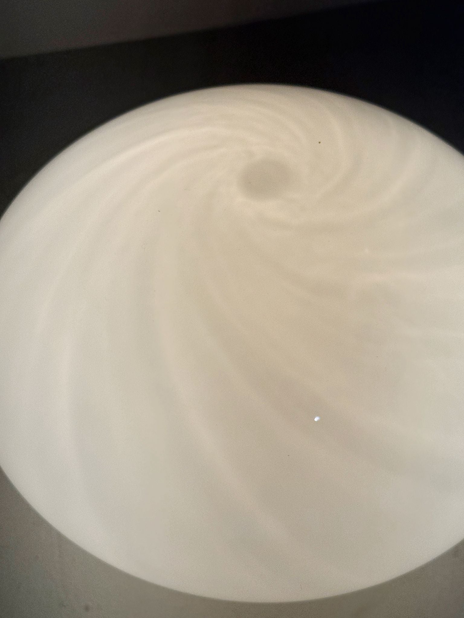 A pair of white blown opal glass table lamps with a metal base, one in brass and the other in nickel. The soft, ovoid shape of the diffuser provides a warm, even light, ideal for bedside tables, shelves, or atmospheric spaces.