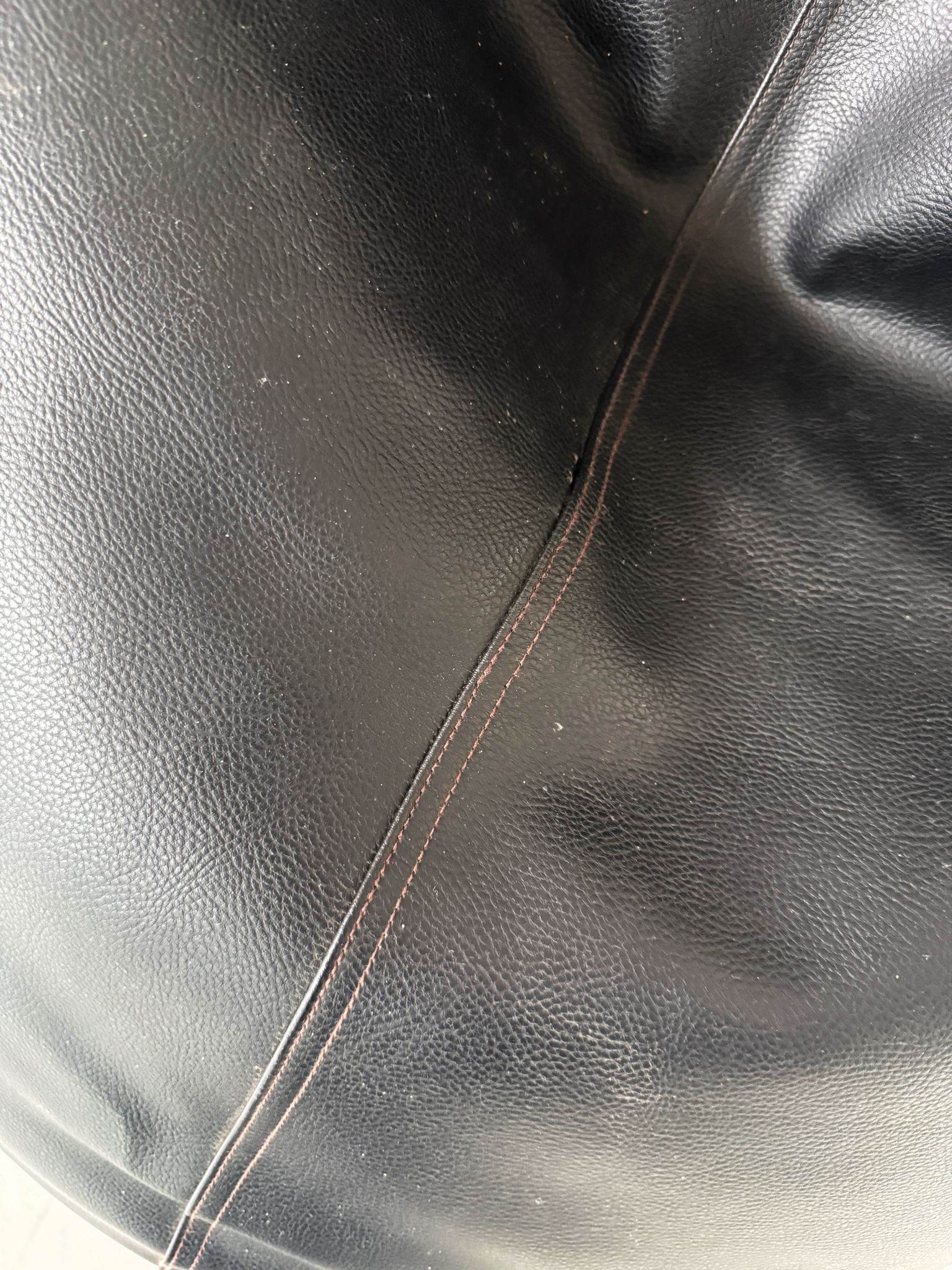 Informal beanbag chair, typical of Italian production in the 1970s, featuring a black faux leather upholstery with loose padding that molds naturally to the body. The soft, sculptural shape, devoid of a rigid structure, reflects the radical and unconventional aesthetic of the period, designed for relaxed domestic settings and informal living spaces.