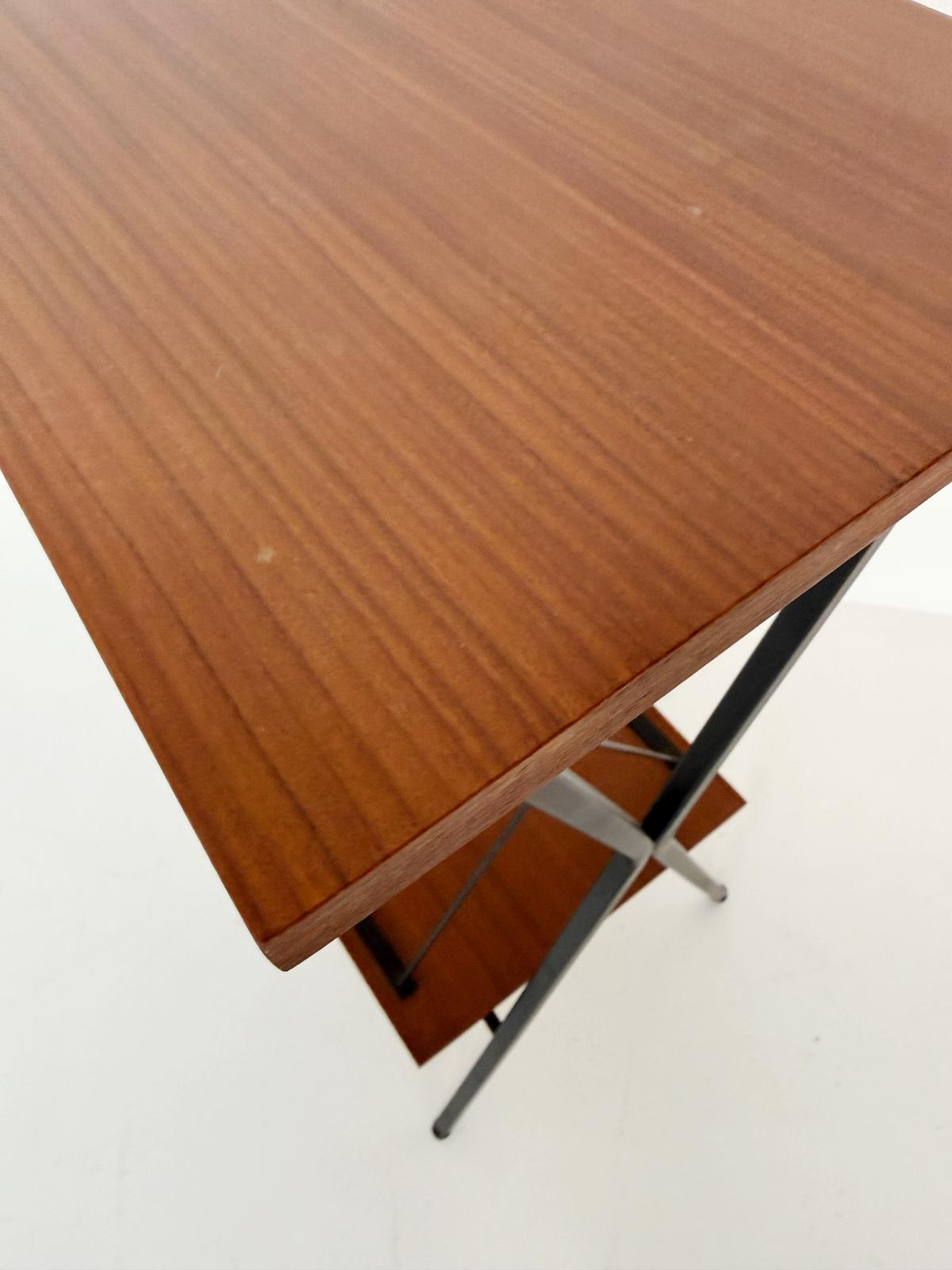 An elegant magazine rack with a simple and refined design, typical of the Italian mid-century modern style of the 1950s and 1960s.