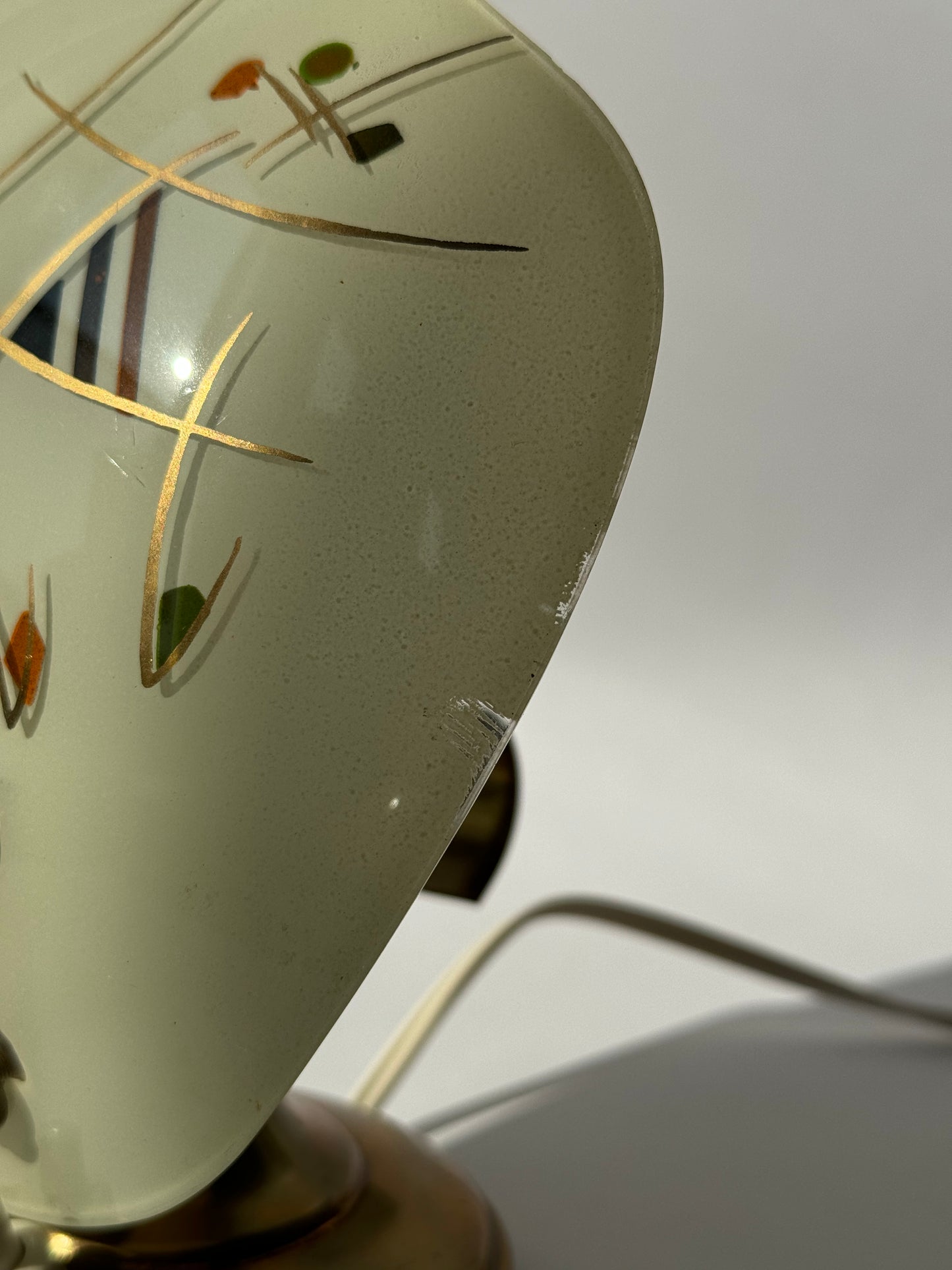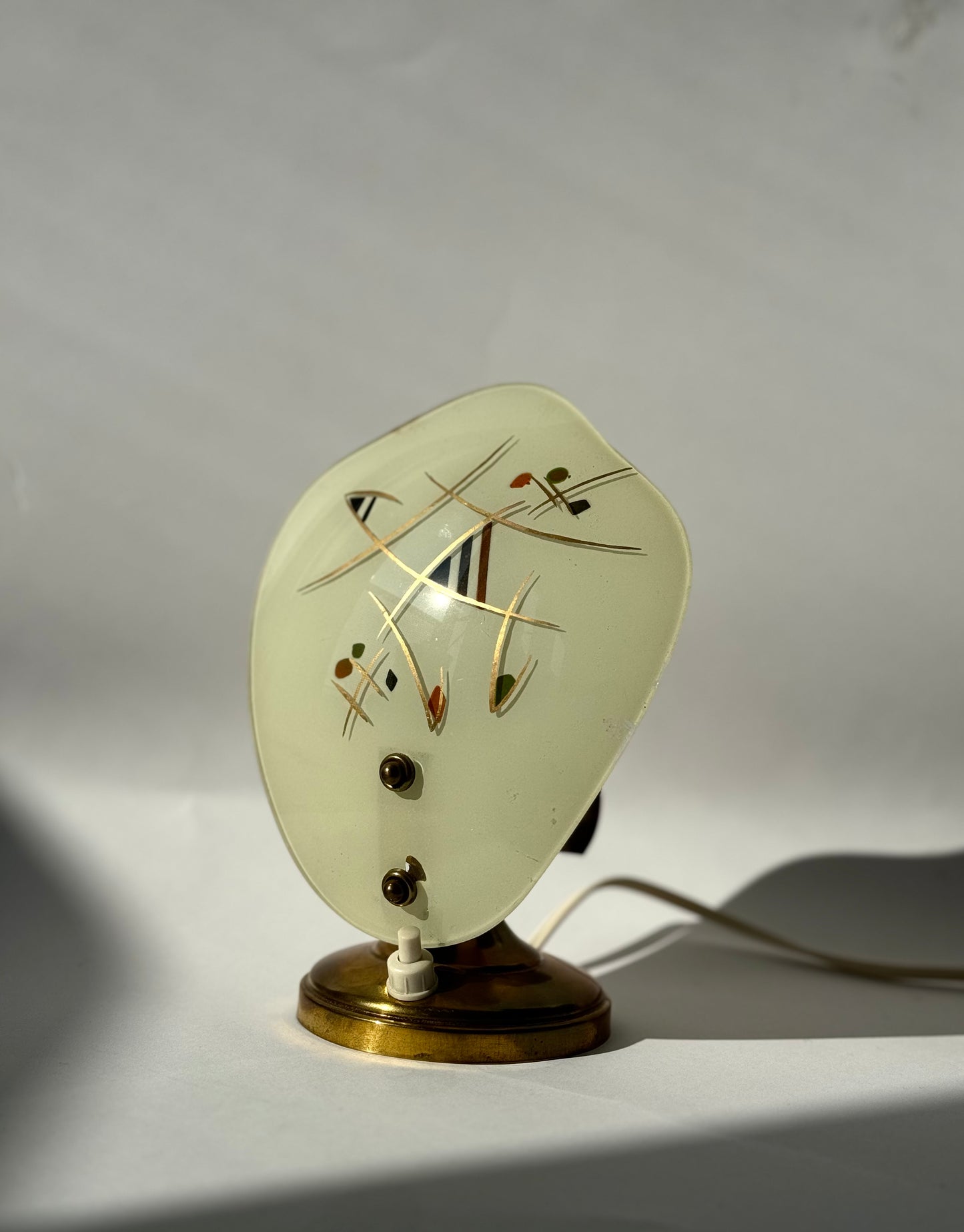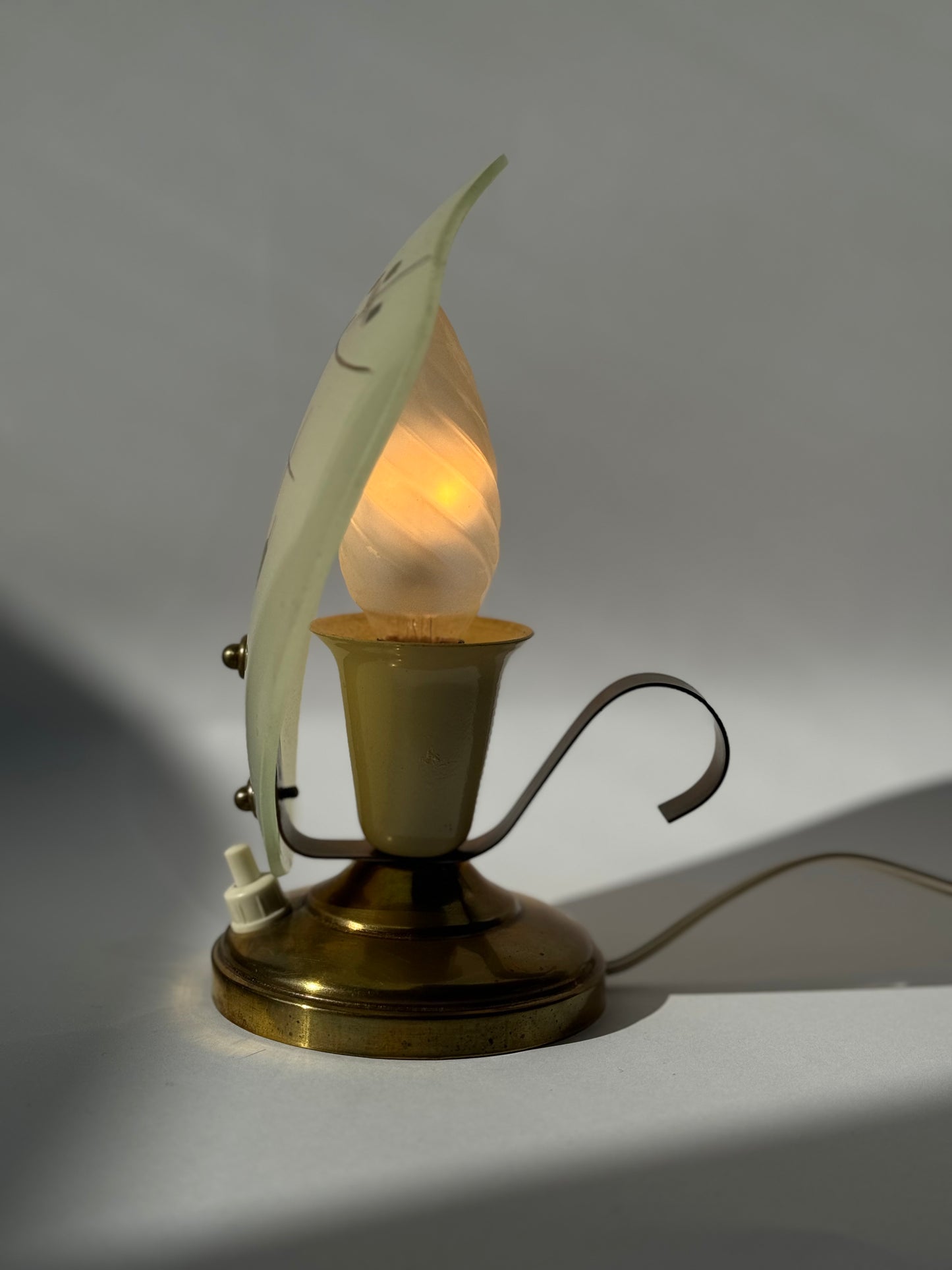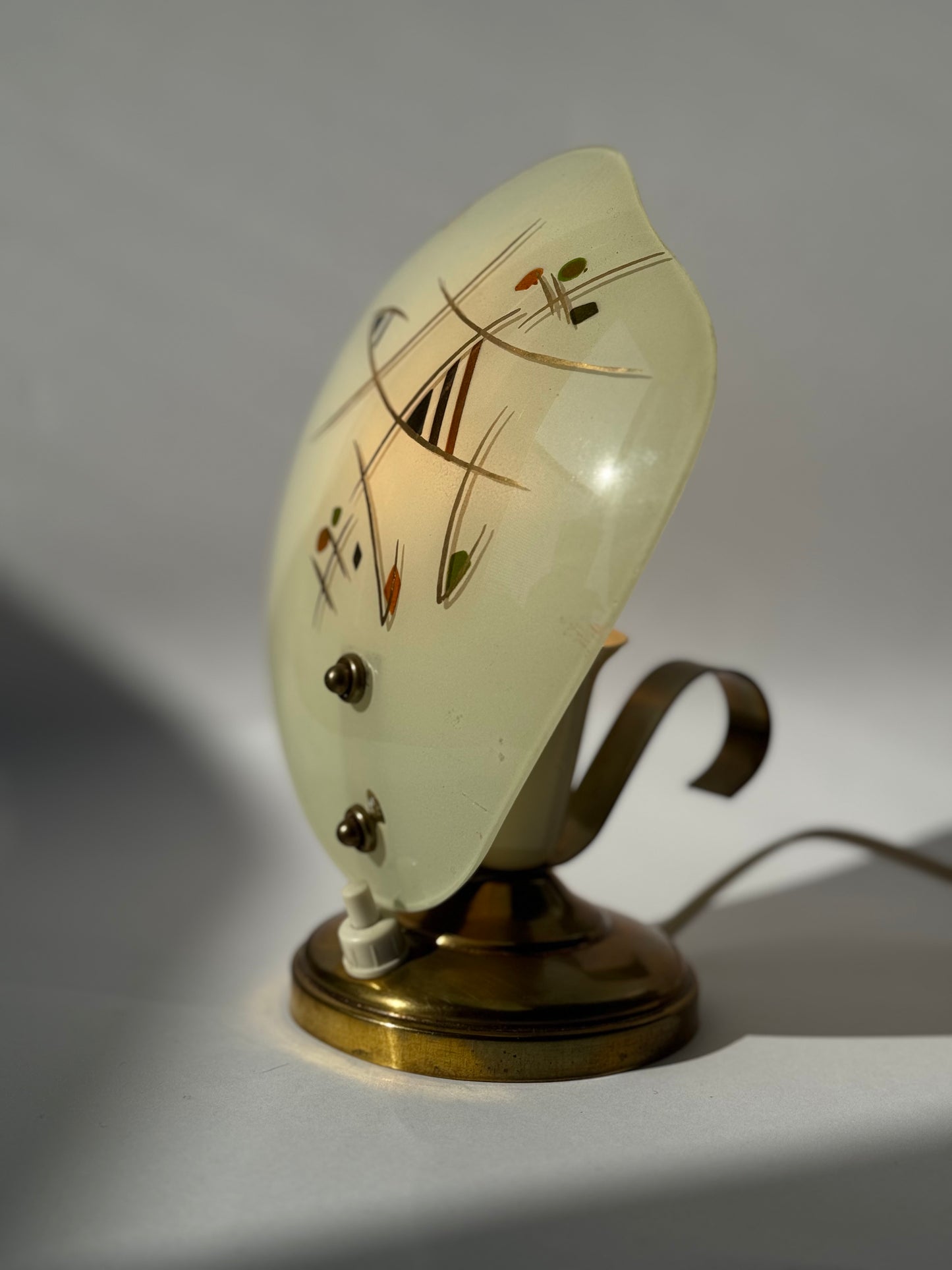 Piccola abat jour,1950, base in ottone e lampada in vetro verde con dettagli