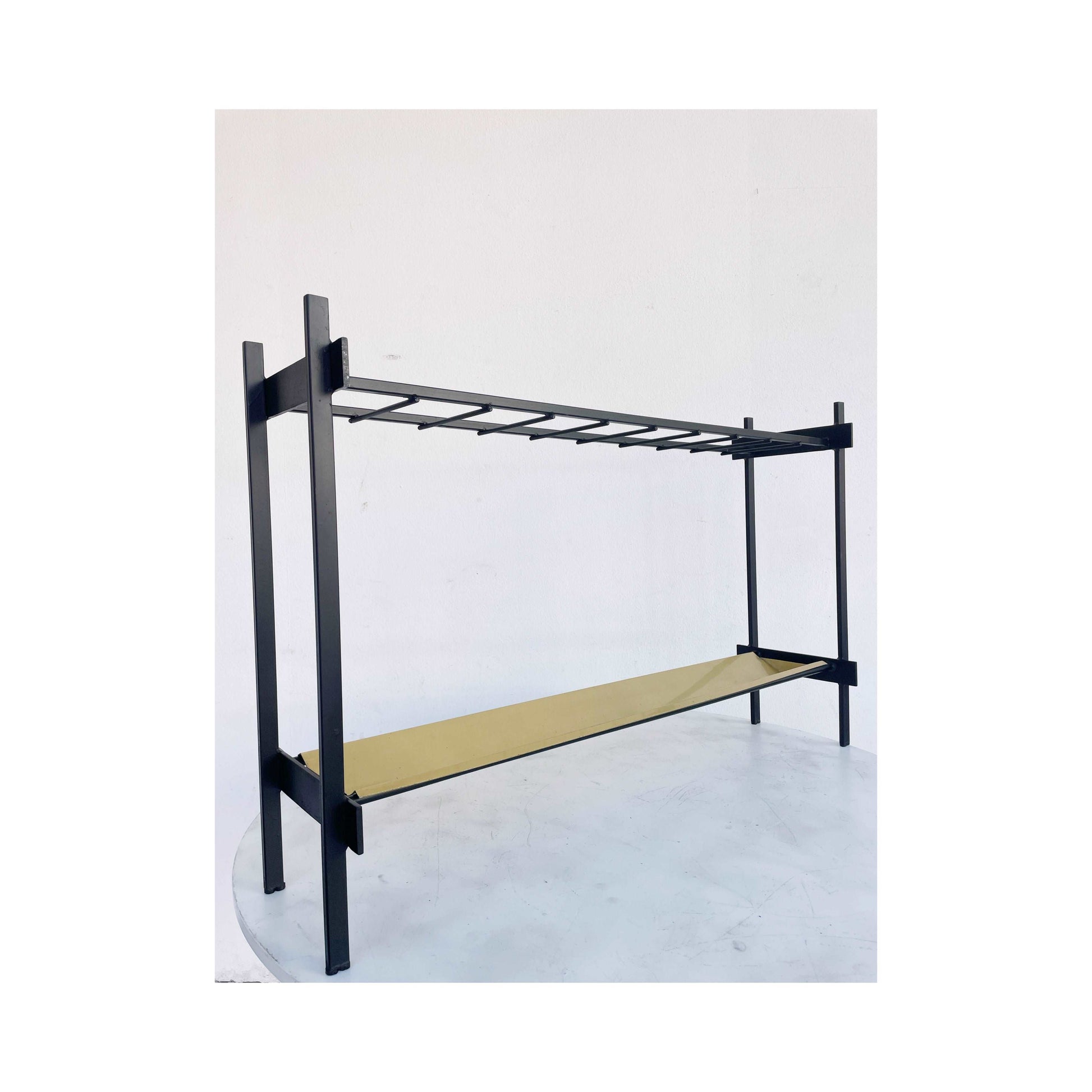 Portaombrelli,1960, struttura in metallo nero con dettaglio in metallo dorato