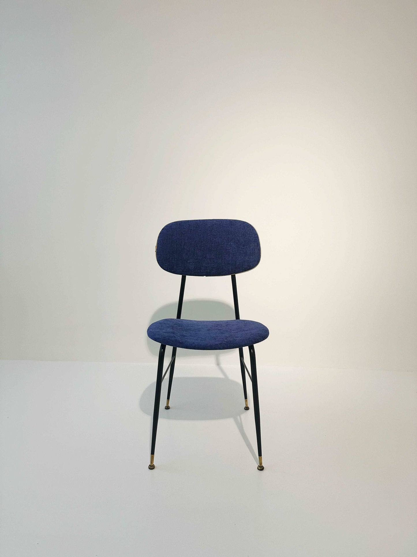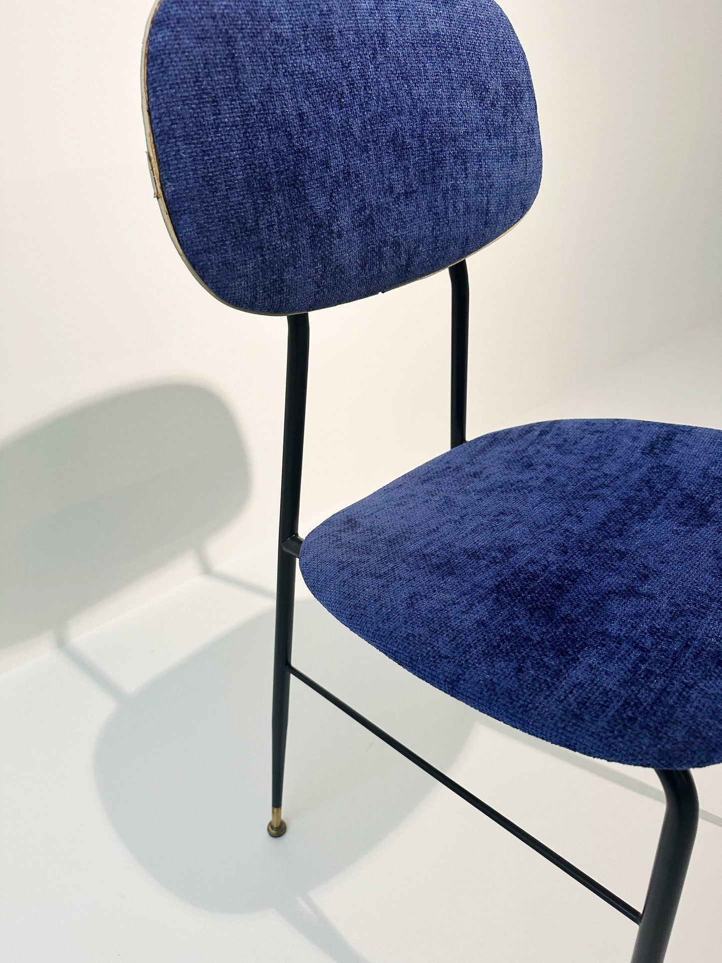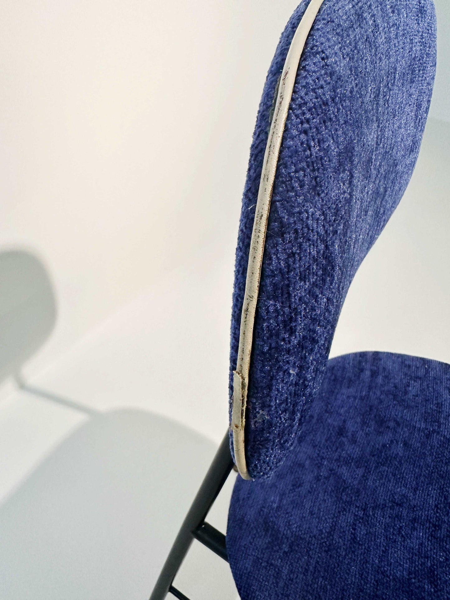 Sedia, 1960, struttura in metallo nero, seduta e schienale in ciniglia blu