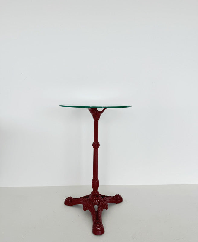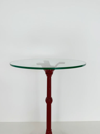 Tavolino,1960, struttura in ferro rosso e piano tondo in vetro