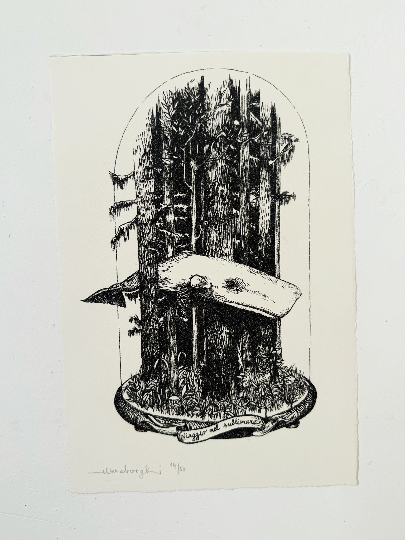 Acquaforte in edizione limitata. Nota fin dai tempi antichi, l'acqua forte consiste nell'incidere una lastra di zinco con i tratti che si vogliono trasportare su carta grazie all'uso di inchiostri