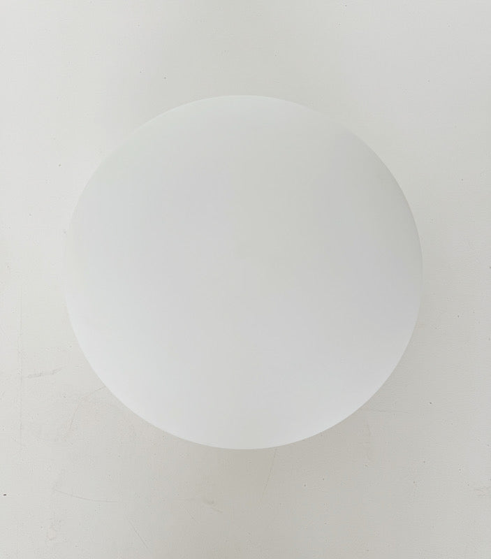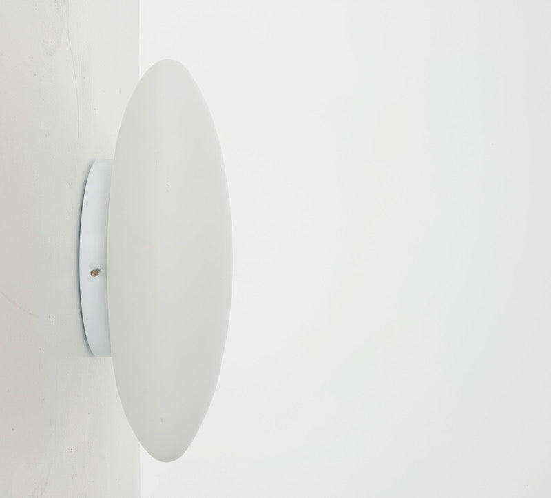 Applique,1960, base in metallo bianco e lampada in vetro opaco