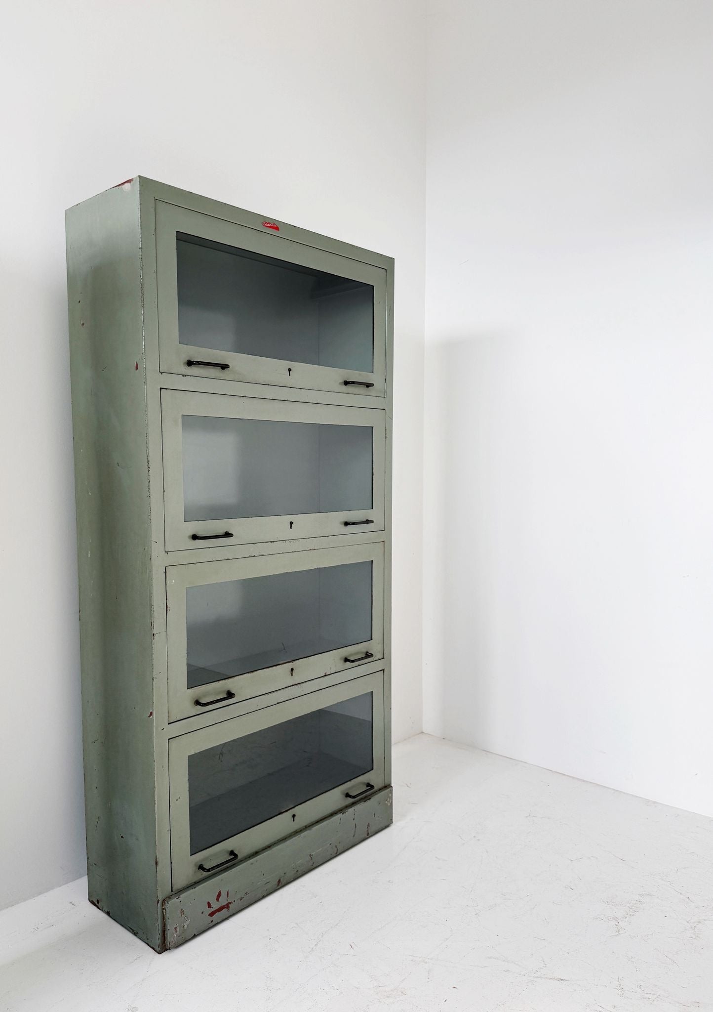 Armadio vetrato industriale in metallo, 4 ante basculanti – anni 40/50
