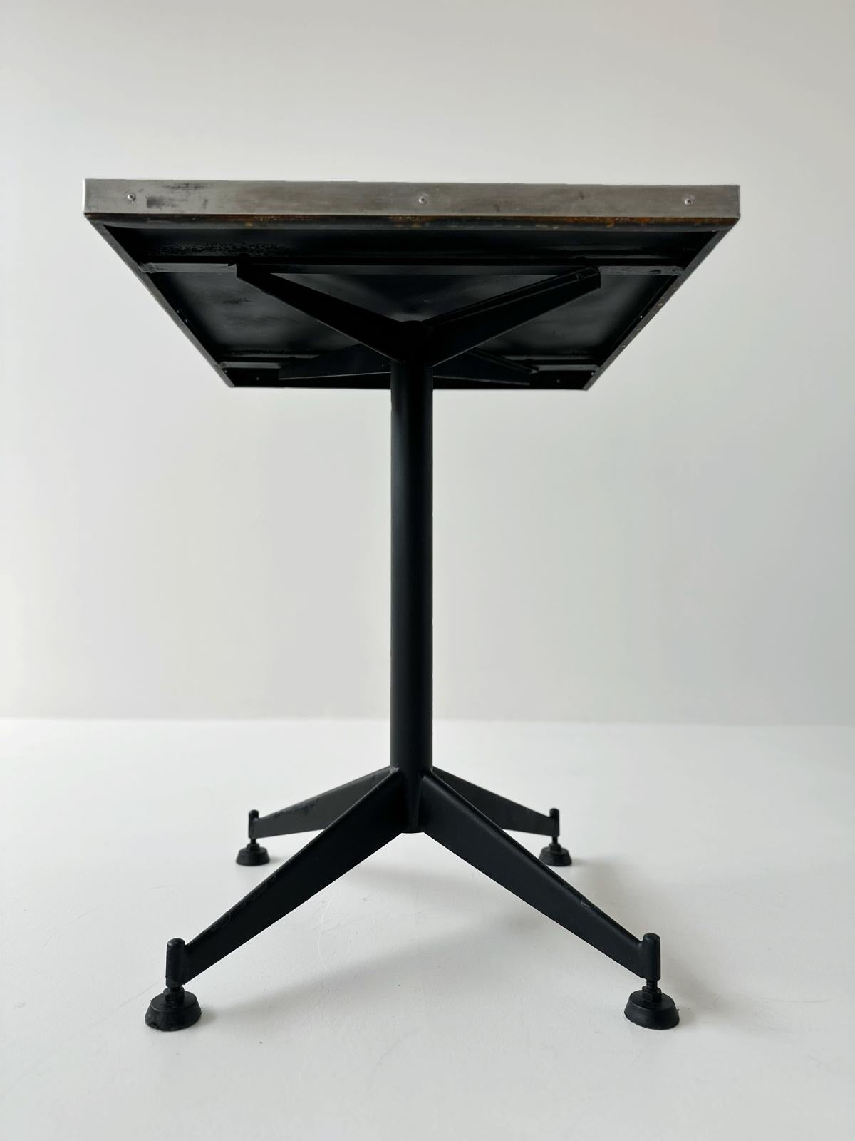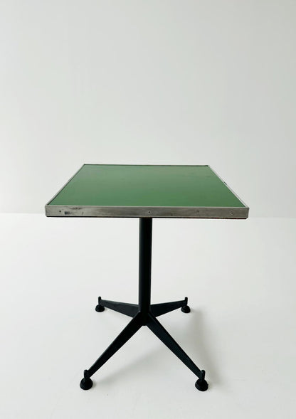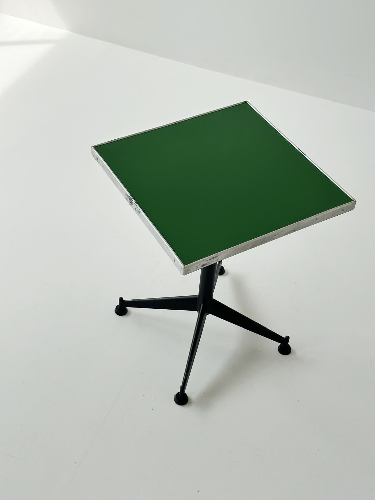 Tavolino,1960, struttura in metallo nero e piano in legno verde