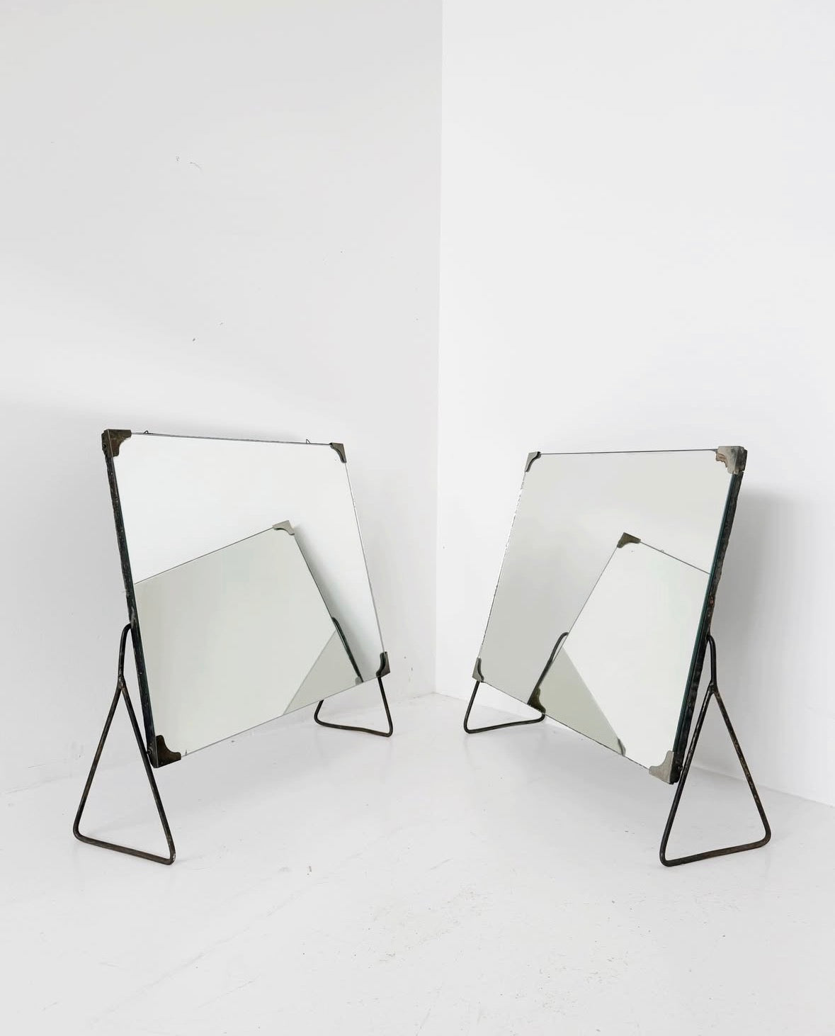 Coppia di specchi da appoggio inclinabili con cavalletto metallico