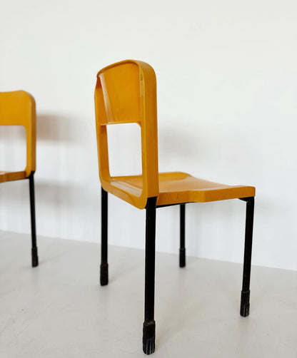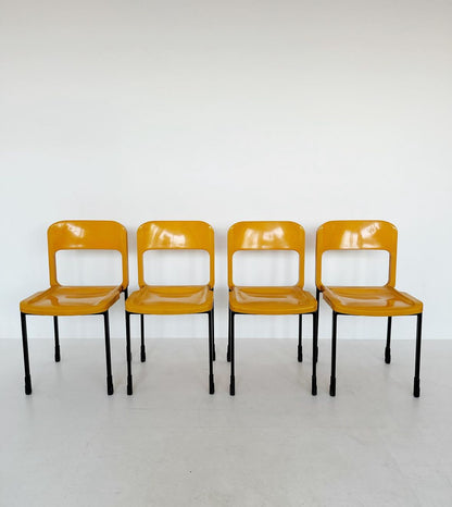 Quattro sedie Grosfillex, Mod 25127,1970. In plastica gialla e nera