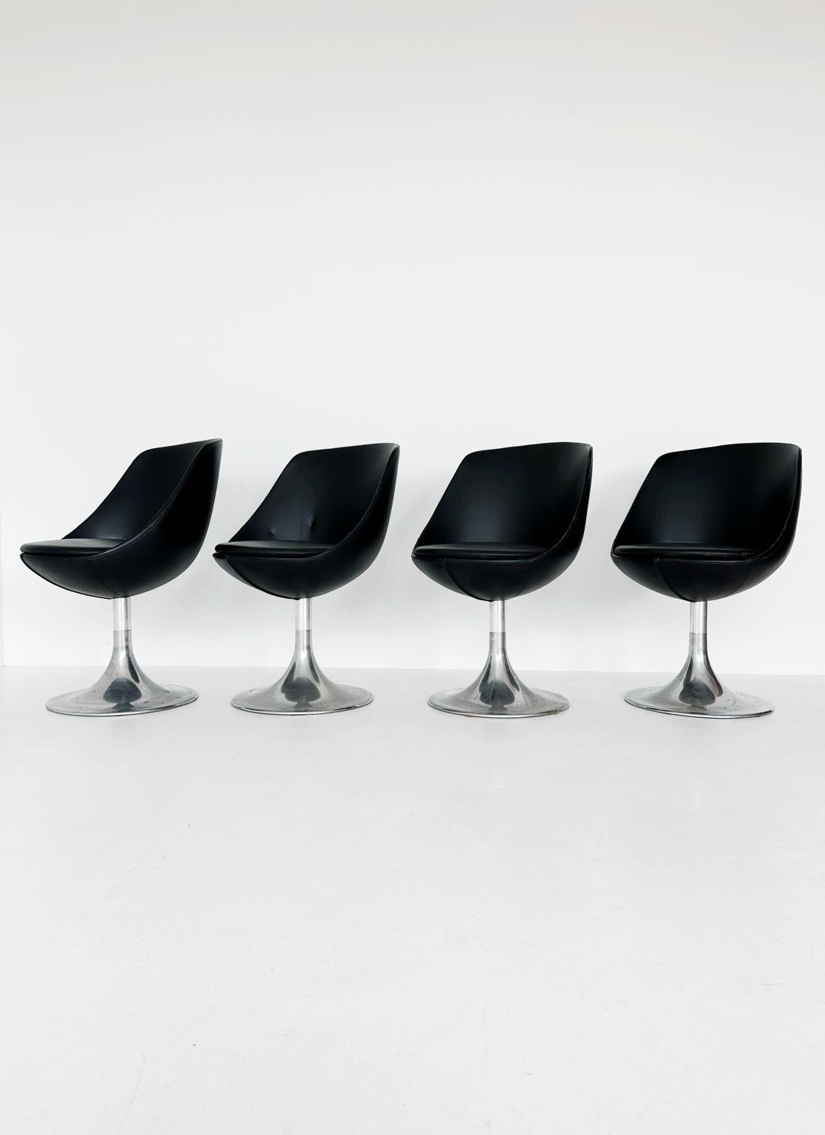 Quattro sedie,1970, struttura in alluminio, seduta girevole in sky nero