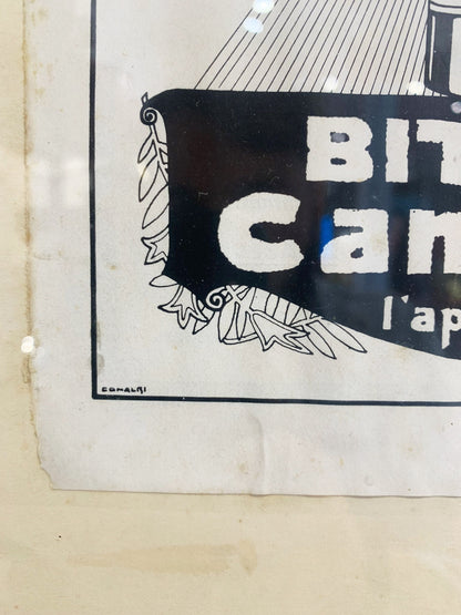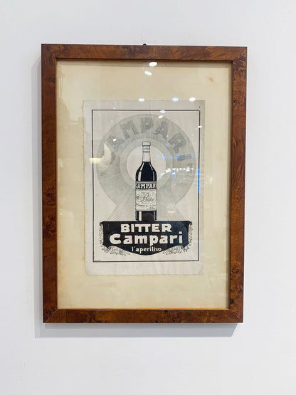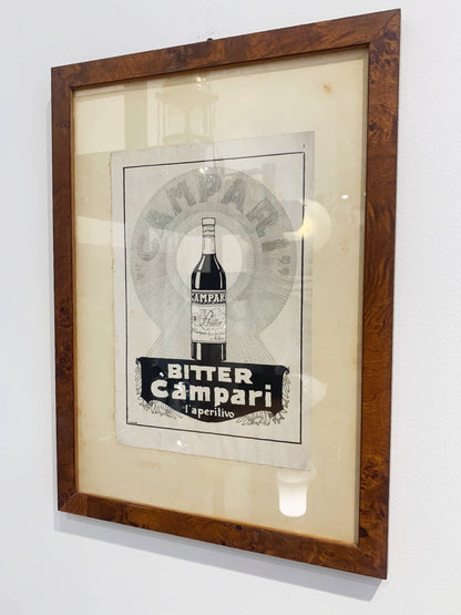 Rivista incorniciata Bitter Campari,1960, cornice in radica