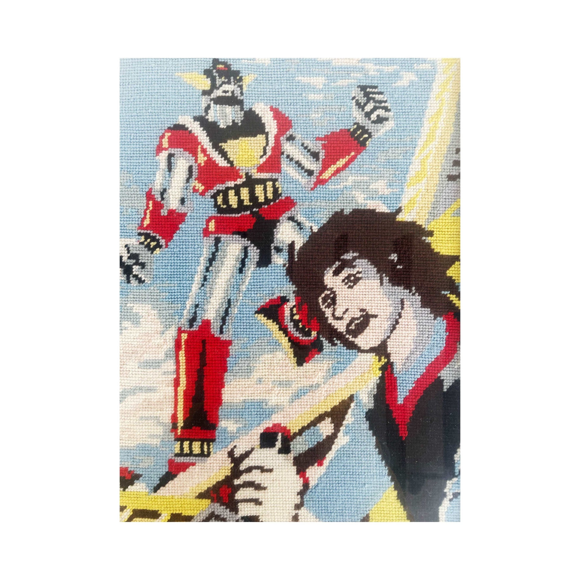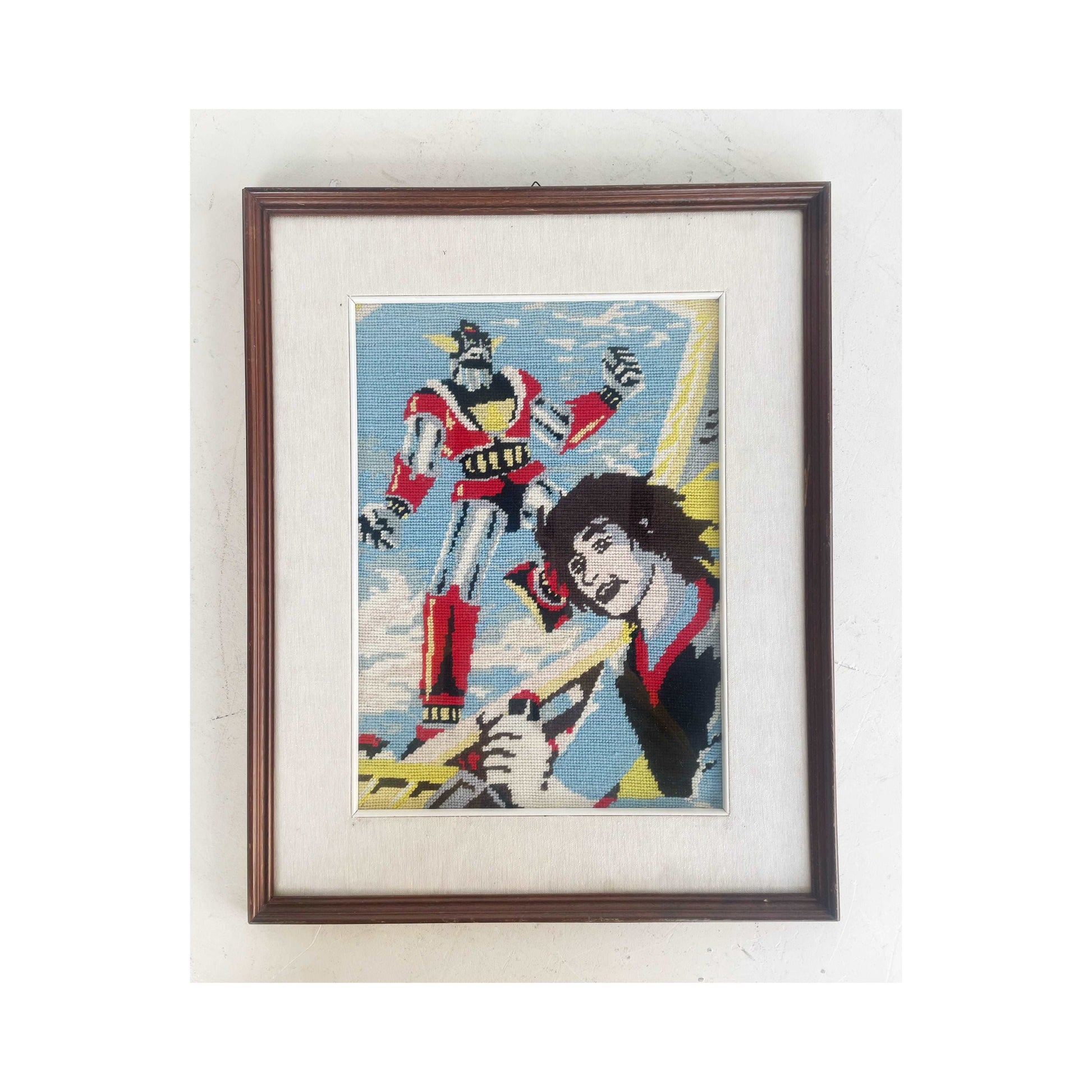 Quadretto, 1980, Goldrake ricamato all'uncinetto. Cornice in legno