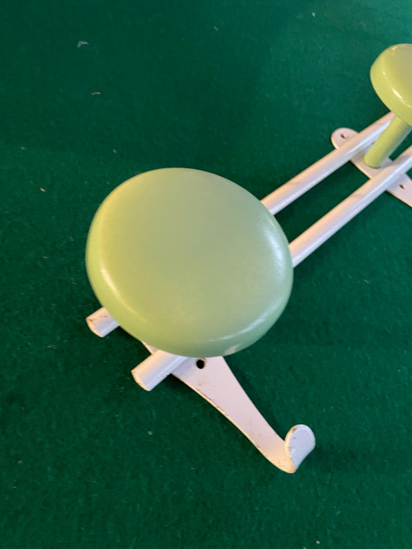 Appendiabiti,1960, struttura in metallo bianco, tre appendini in metallo verde