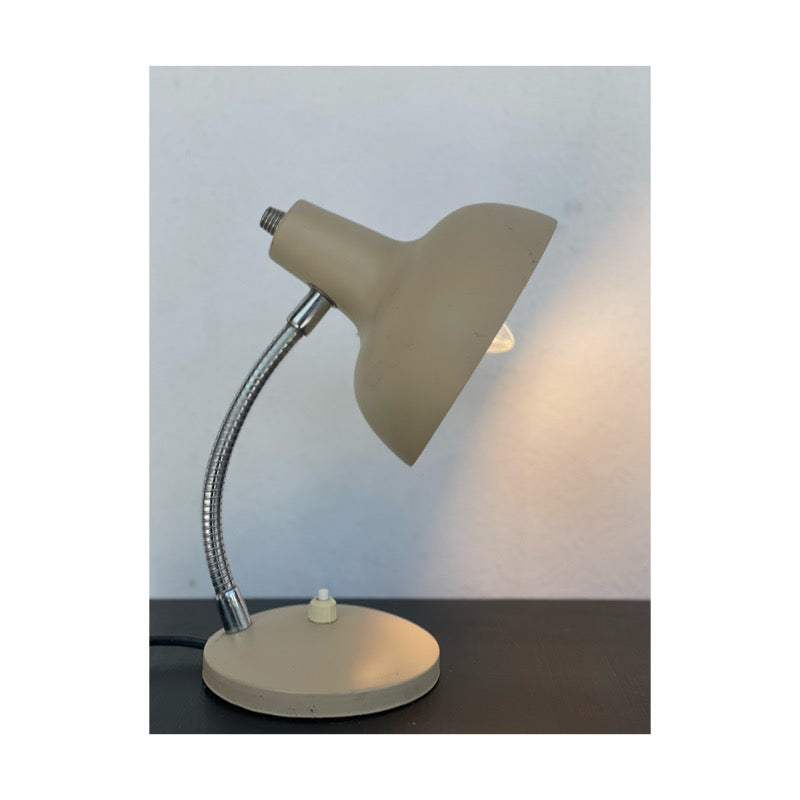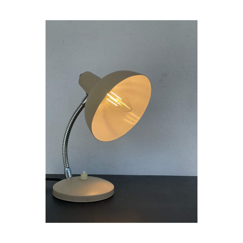 Lampada da tavolo,1960, struttura in metallo cromato, lampada e base in alluminio beige