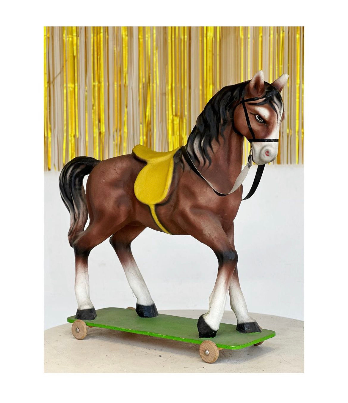 Cavallino,1960, in vetroresina, con ruote. Cavalcabile