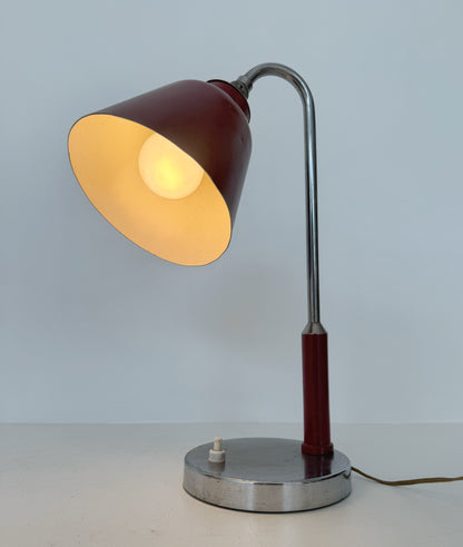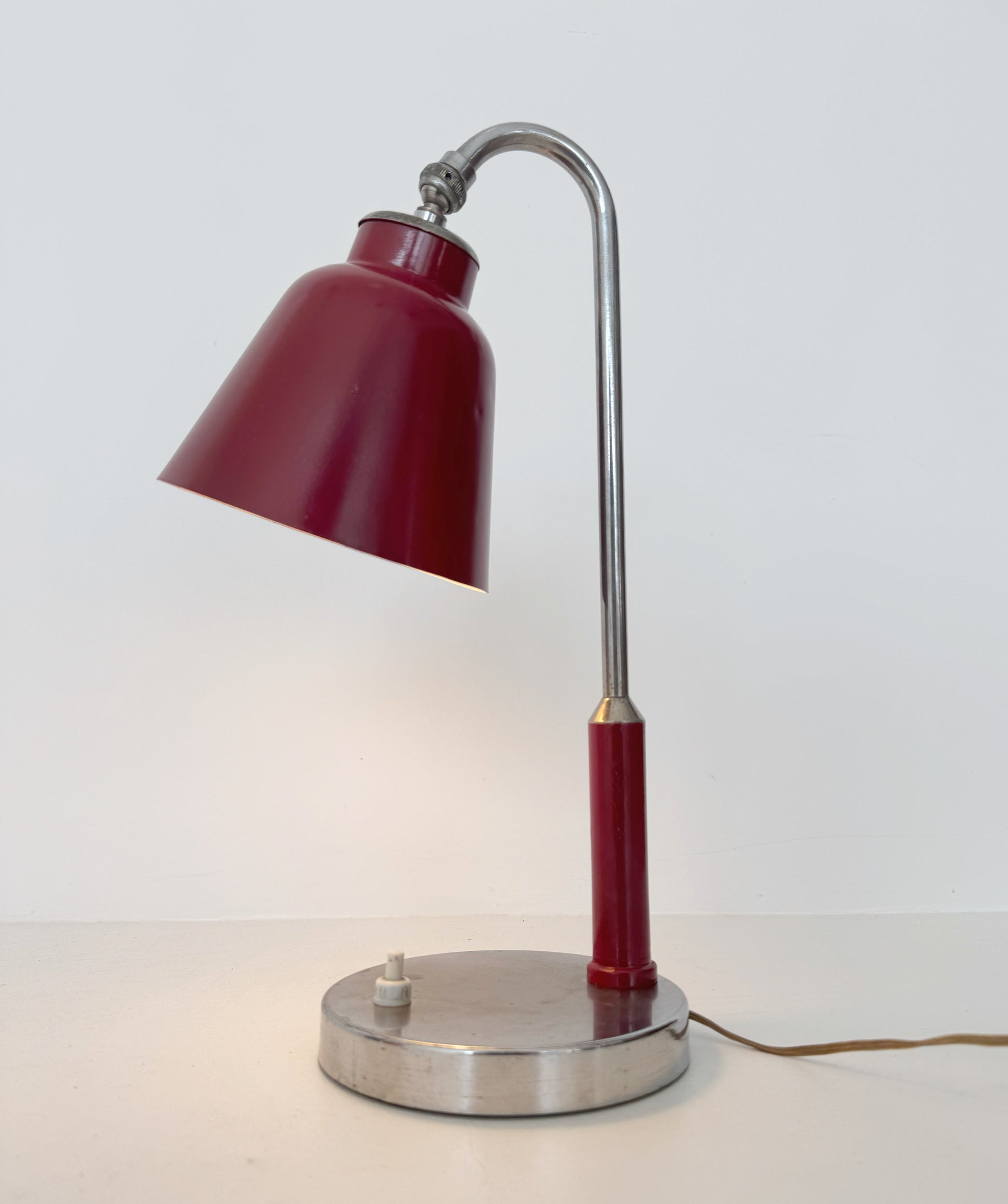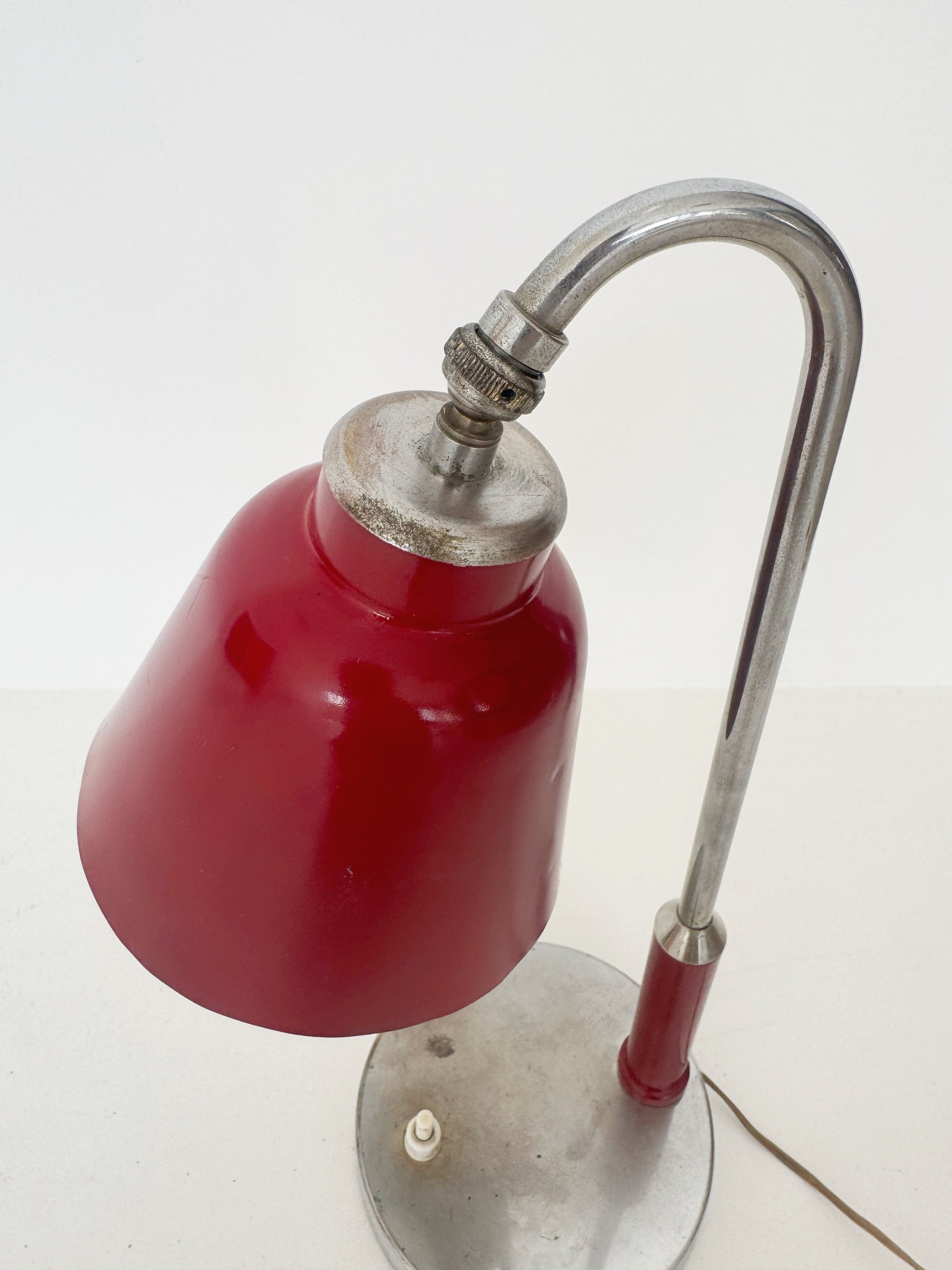 Lampada da tavolo ministeriale,1960, lampada in alluminio rosso, base e struttura in metallo cromato