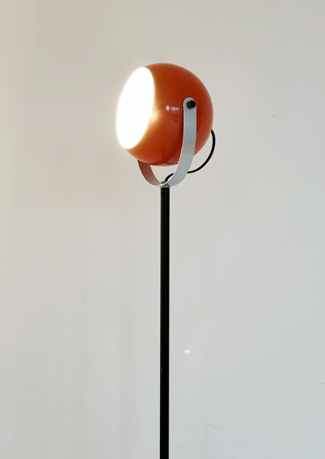 Piantana,1960, struttura in metallo nero, lampada occhio arancione, luce orientabile