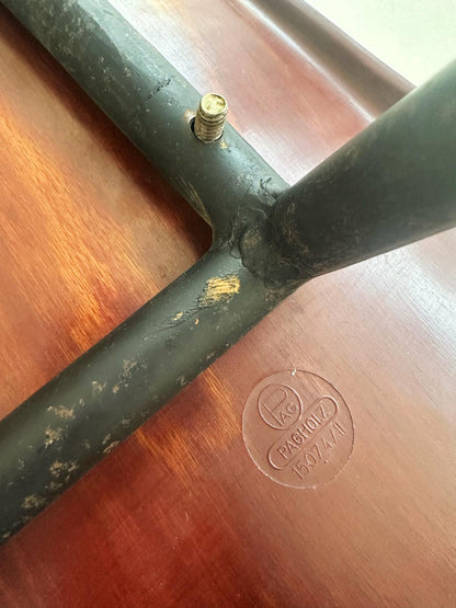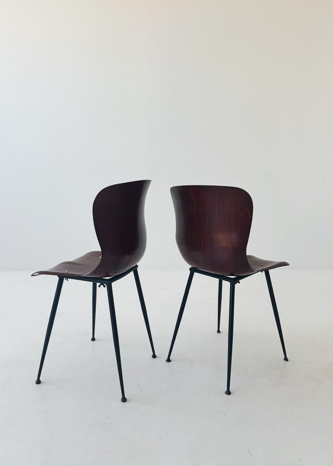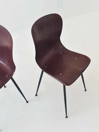 Coppia sedie Pagholz, mode 1507 47/II, struttura in metallo nero e seduta in legno
