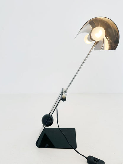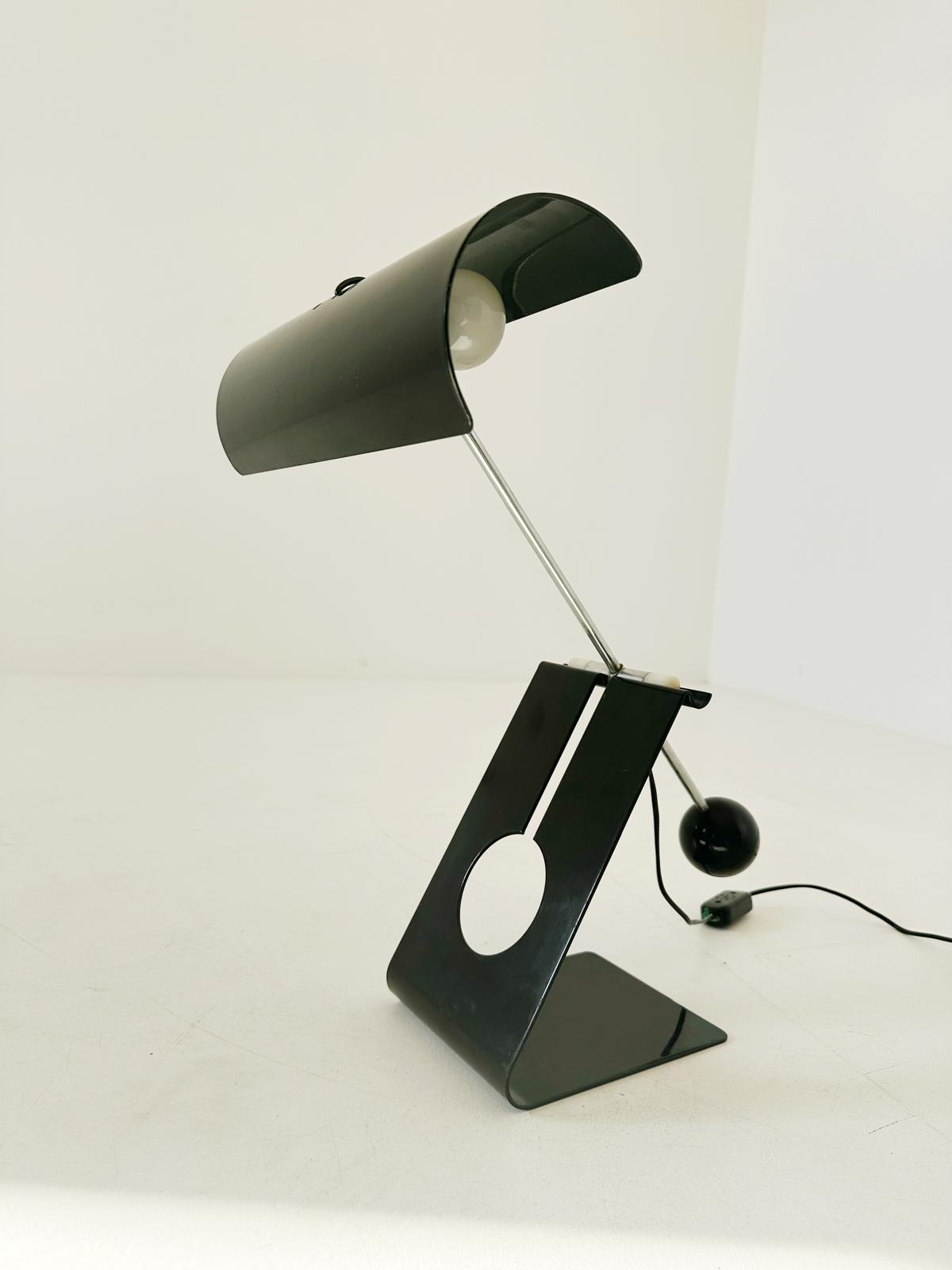 Lampada da tavolo snodabile Picchio design di Mauro Martini per Fratelli Martini, anni '70, luce orientabile, struttura basculante in metallo nero e cromato