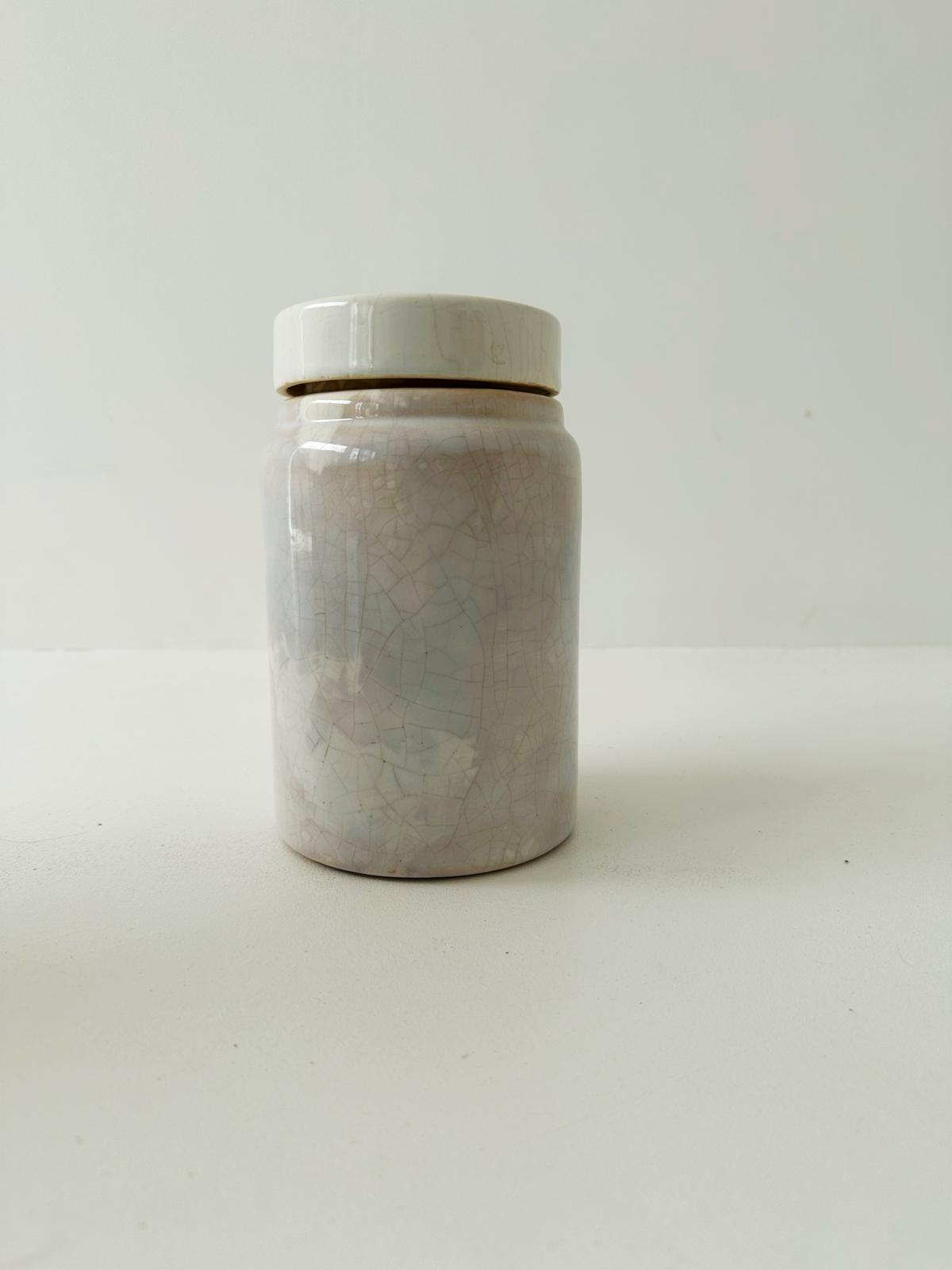 Vaso in terracotta smaltata rifinita con effetto crackle in modo informale ed asimmetrico