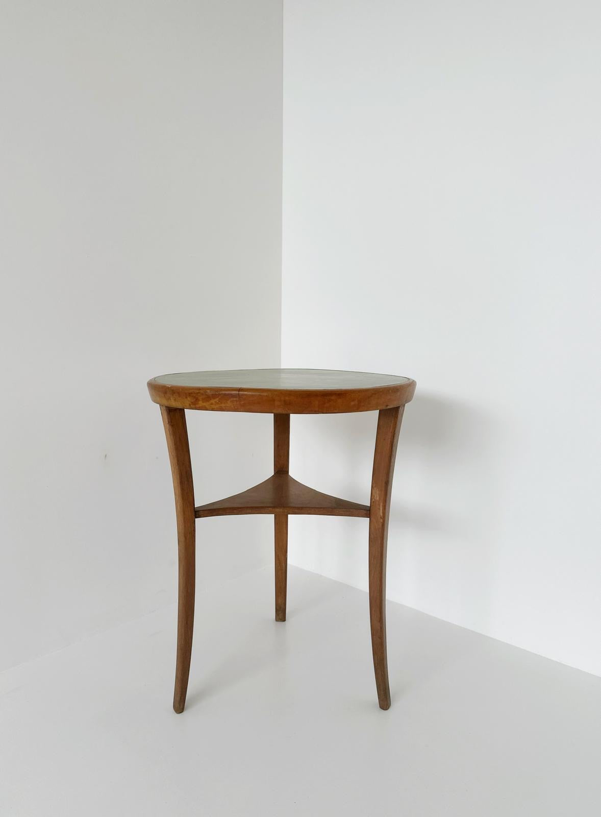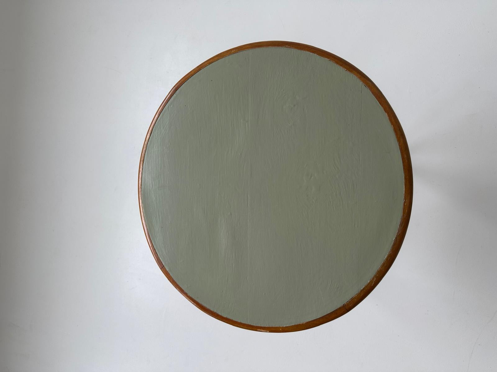 Tavolino,1960, struttura in legno e ripiano tondo in legno verde