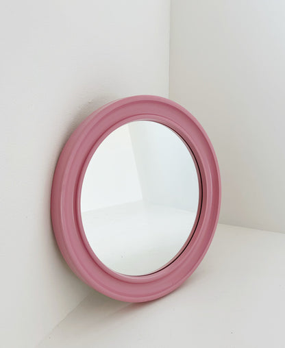 Specchio,1960, cornice tonda in plastica rosa