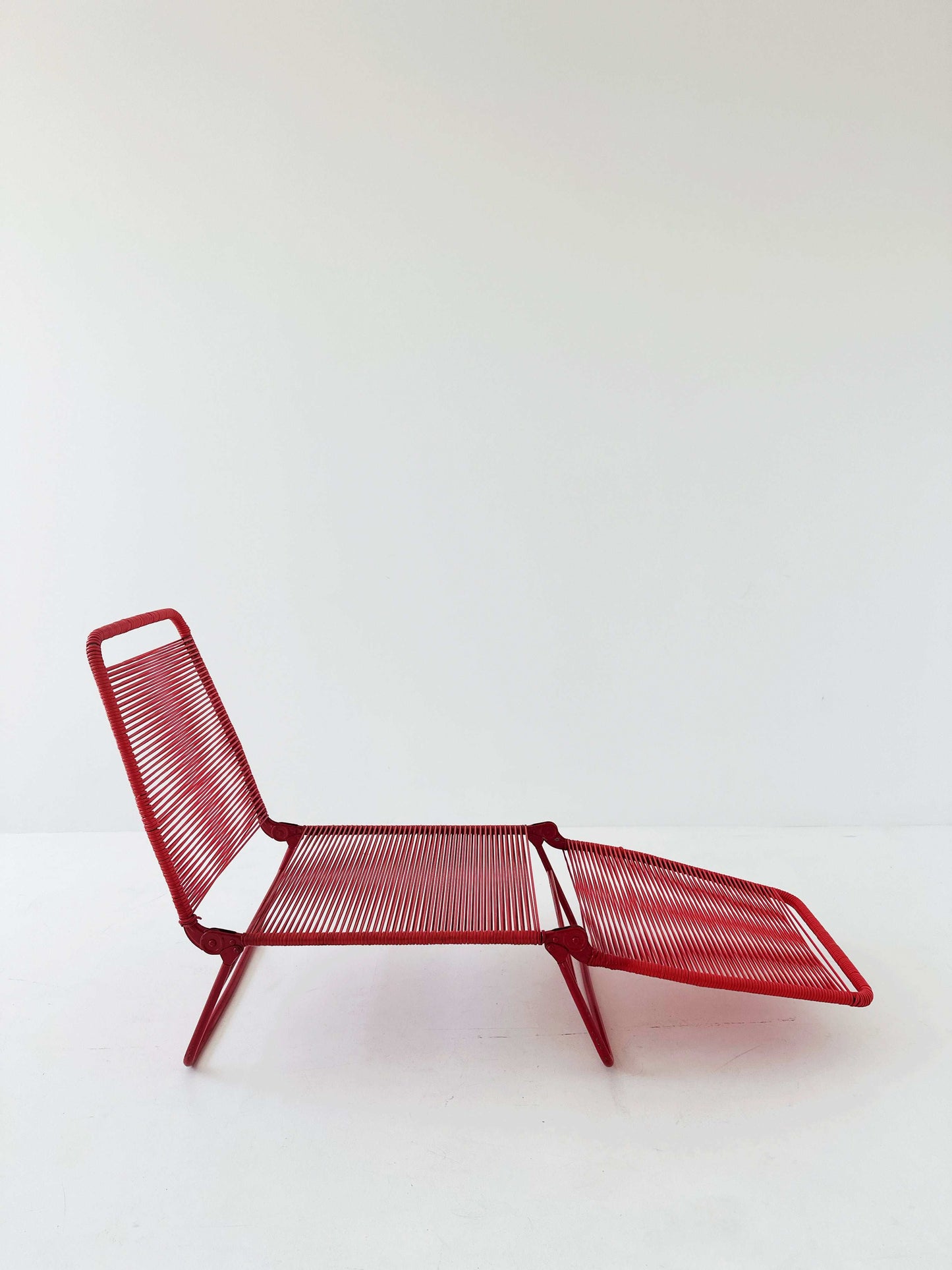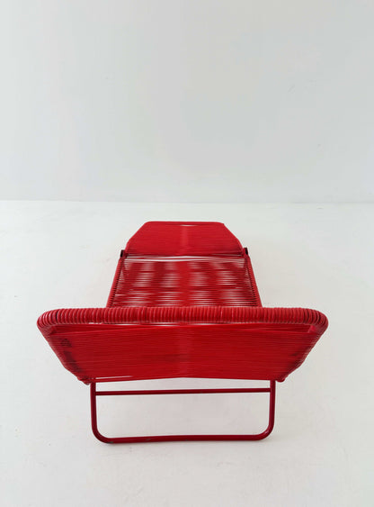 Sdraio Scoubidou in metallo rosso verniciato e corde tese in polipropilene
