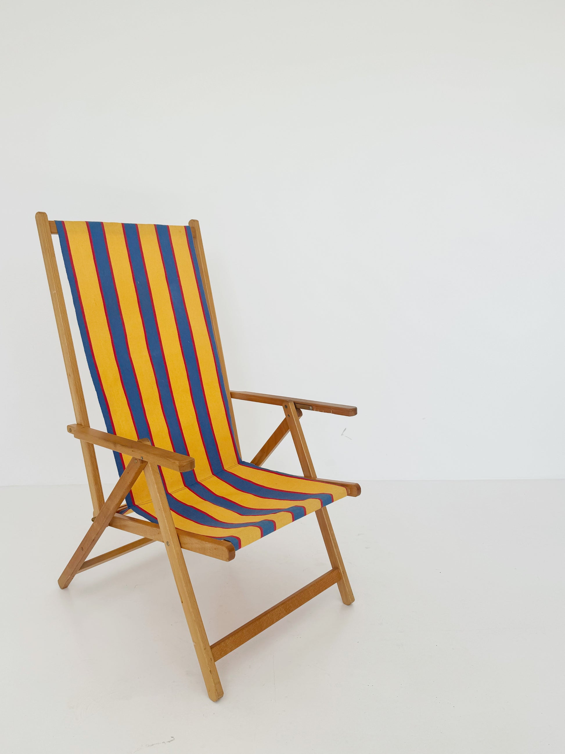 Sdraio,1980, struttura in legno, seduta in tela a righe