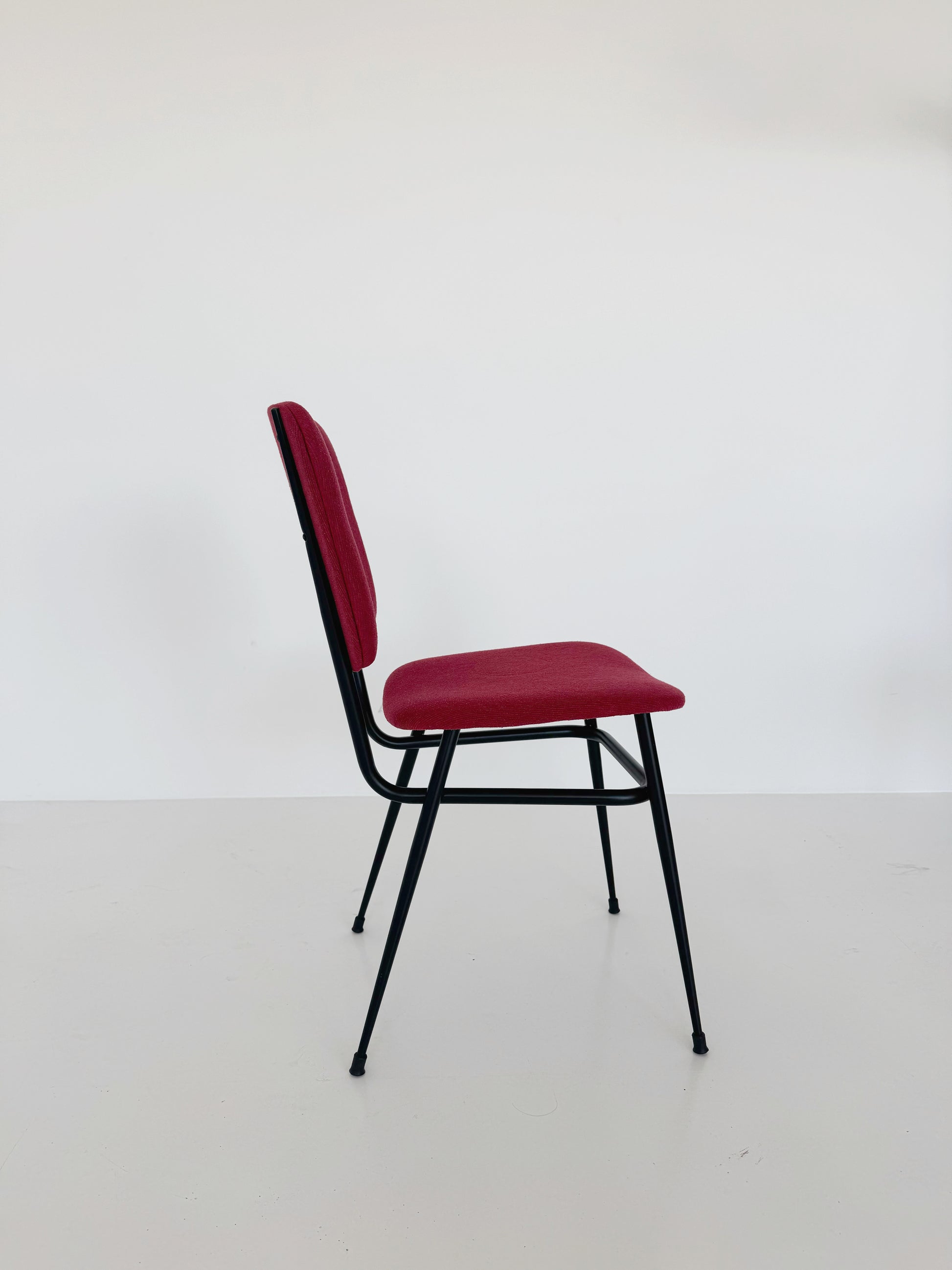 Sedia,1960, struttura in metallo nero, rivestimento della seduta e dello schienale in tessuto rosso