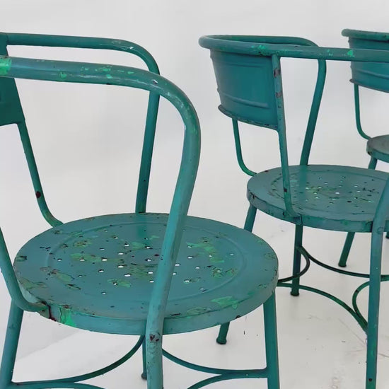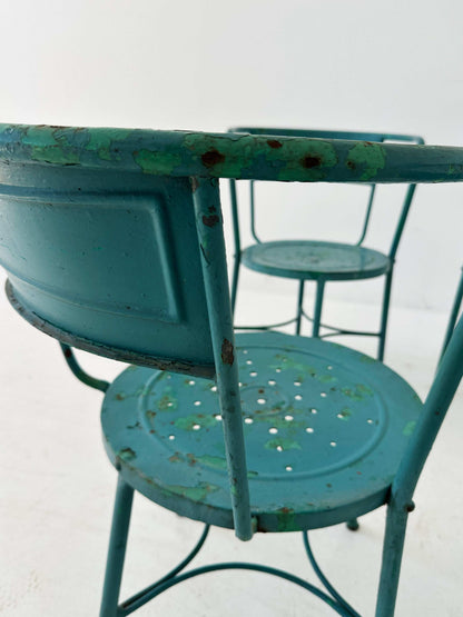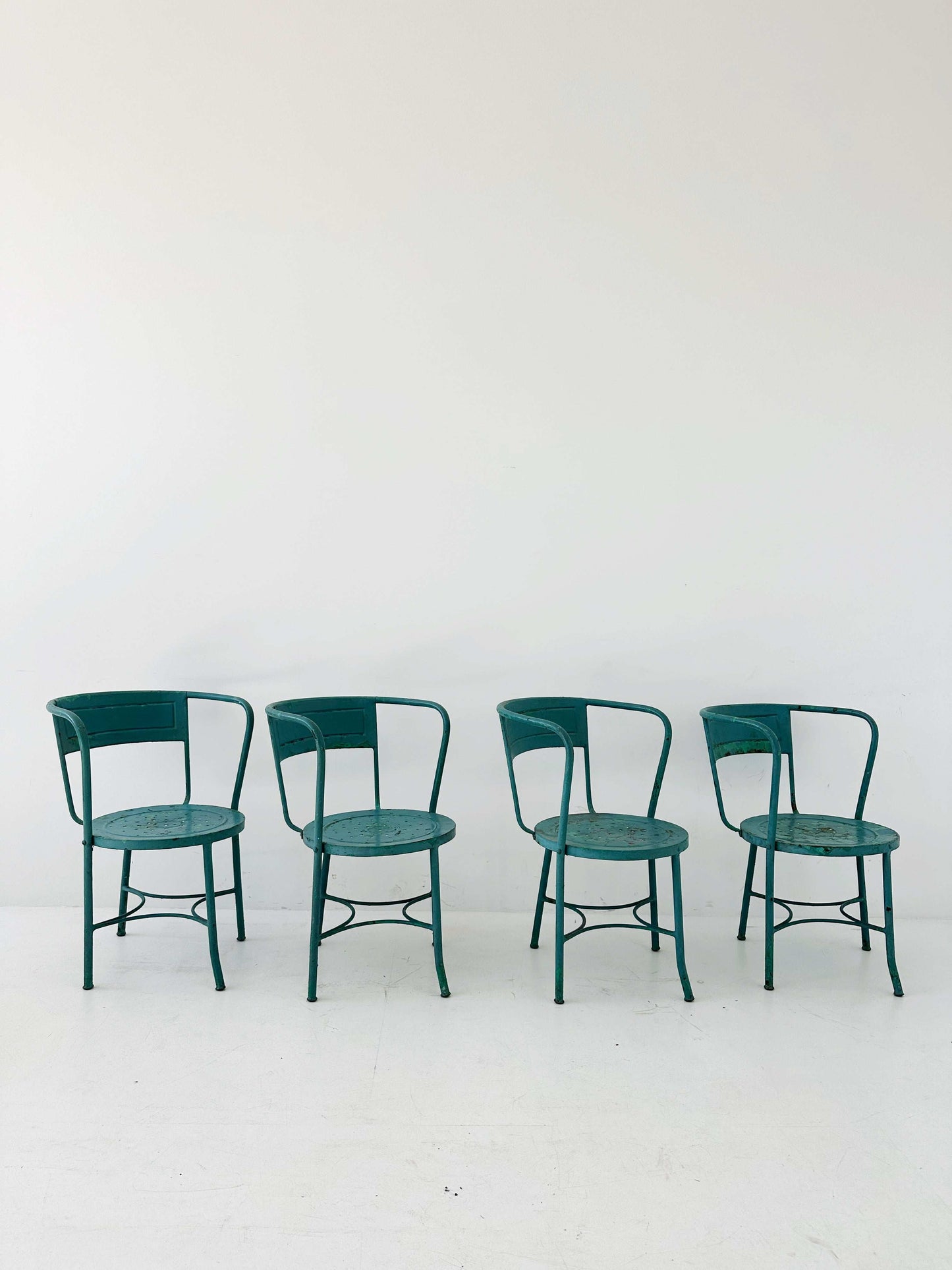 Set di quattro sedie da giardino in ferro risalenti agli anni '50, dal fascino vintage e dall'estetica industriale