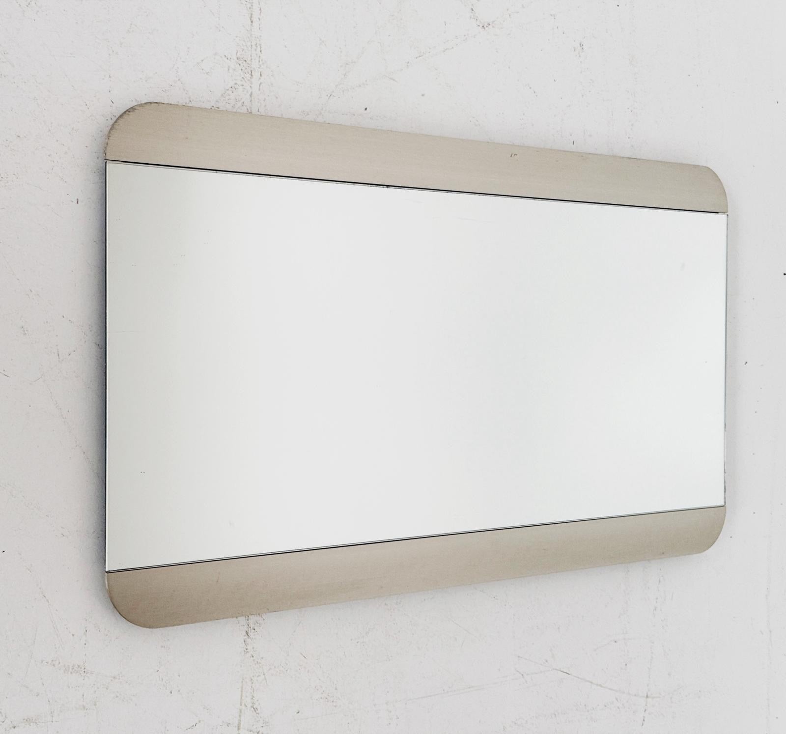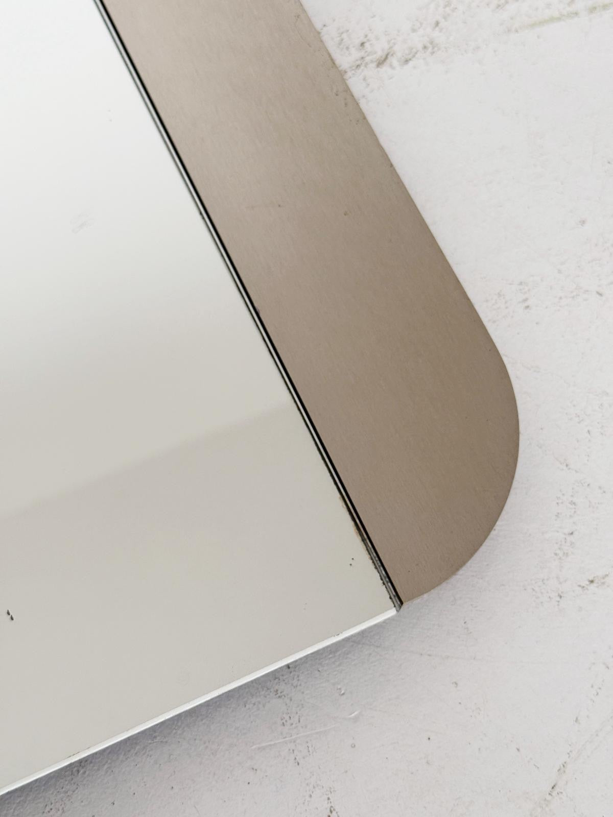 Specchio da parete con cornice laterale arrotondata in metallo cromato satinato – Italia, anni 60