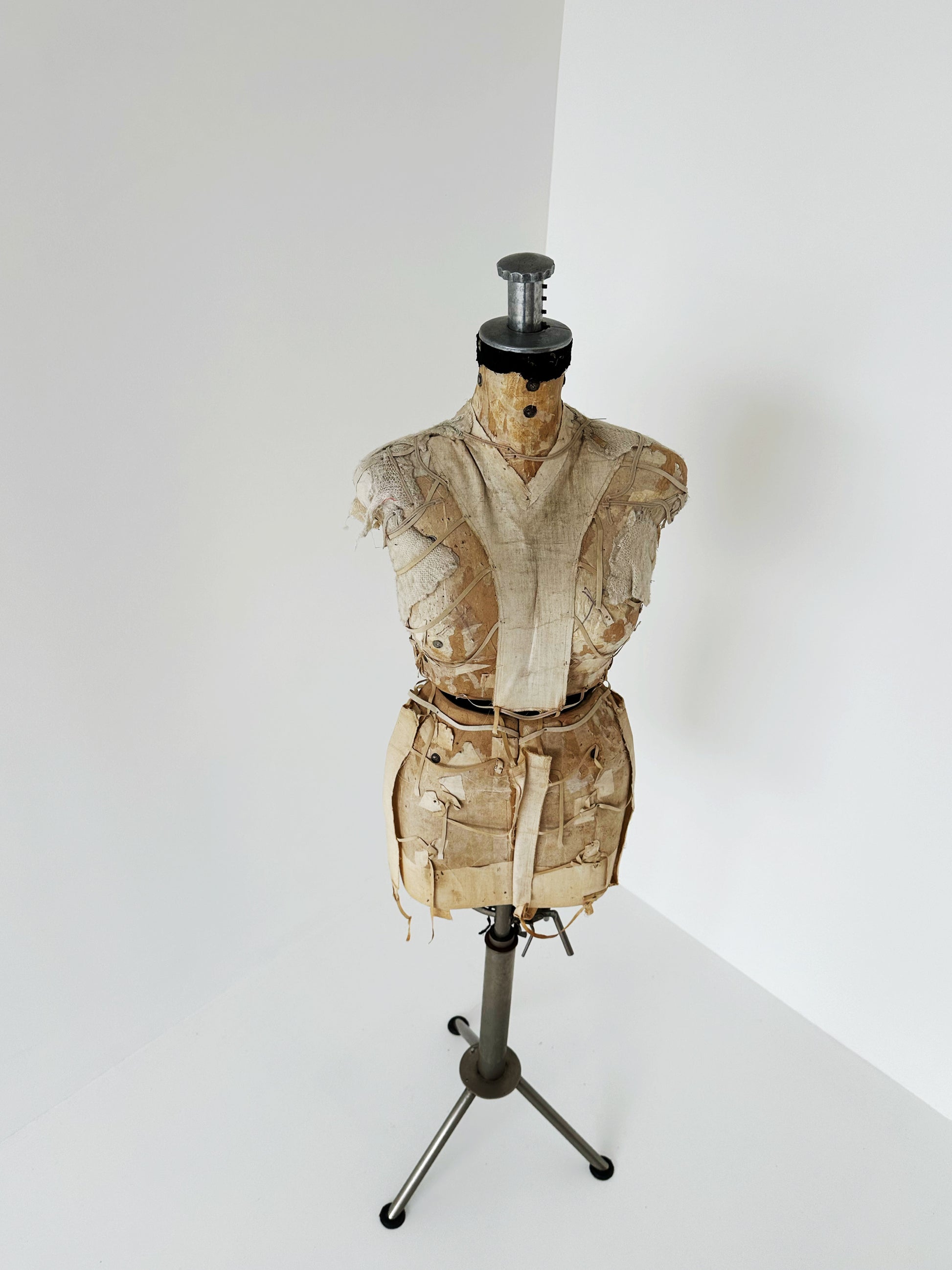 Manichino sartoriale,1950, struttura in metallo, busto in cartone pressato e garza