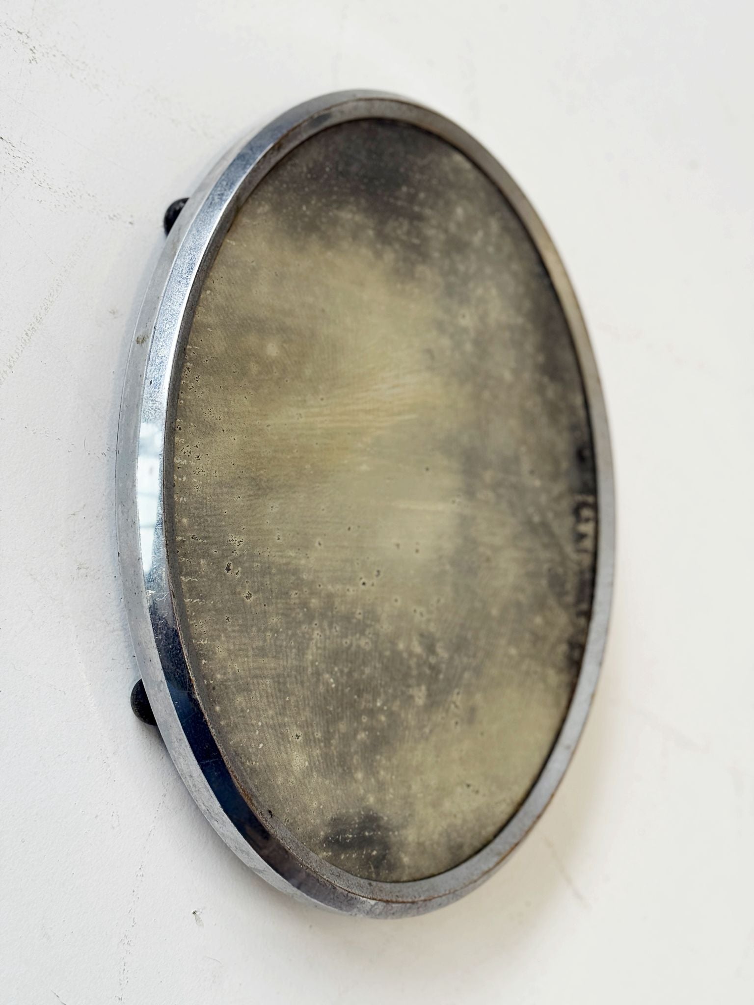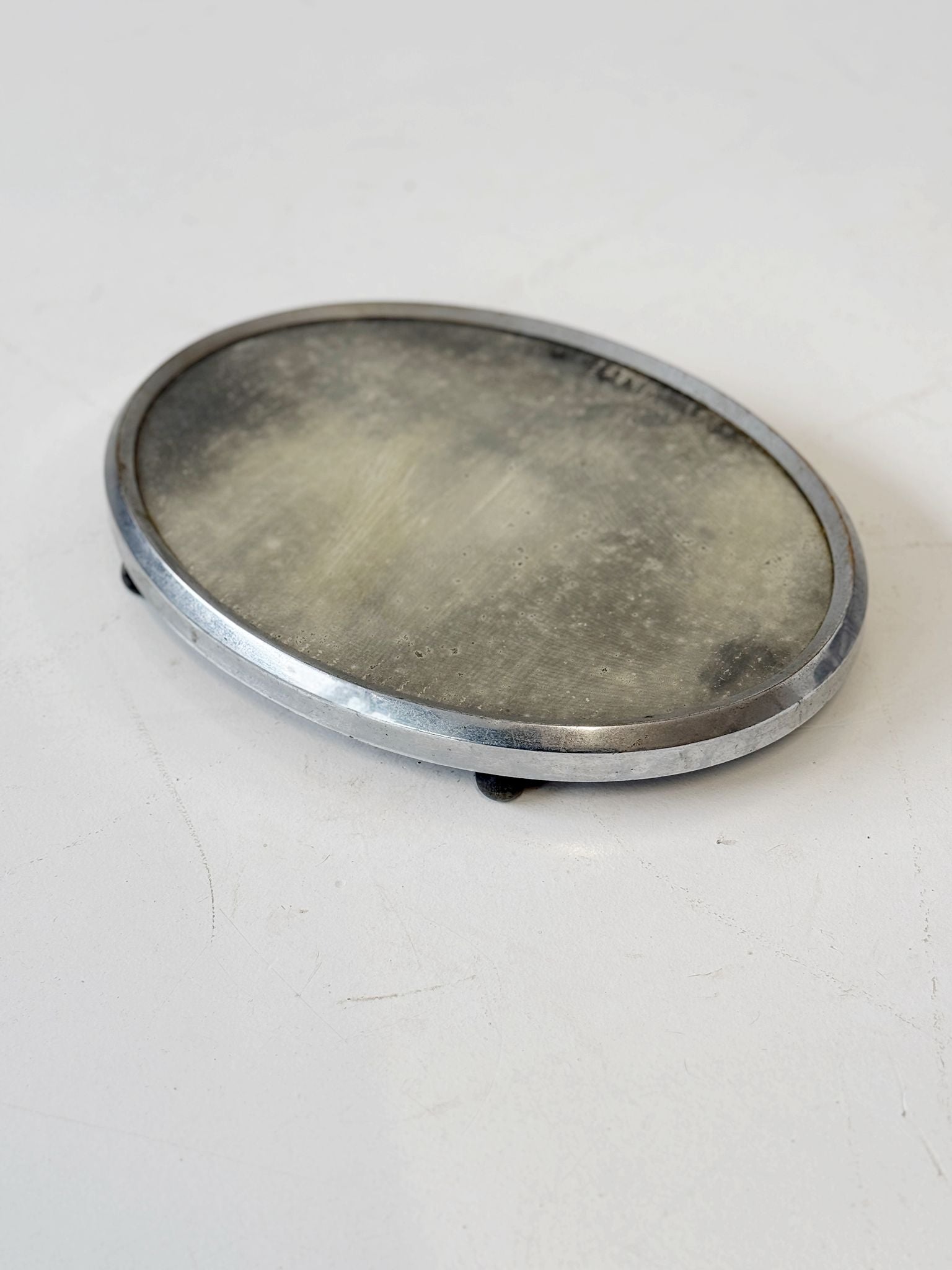 Vassoio ovale in metallo cromato con fondo specchiato – anni ’50